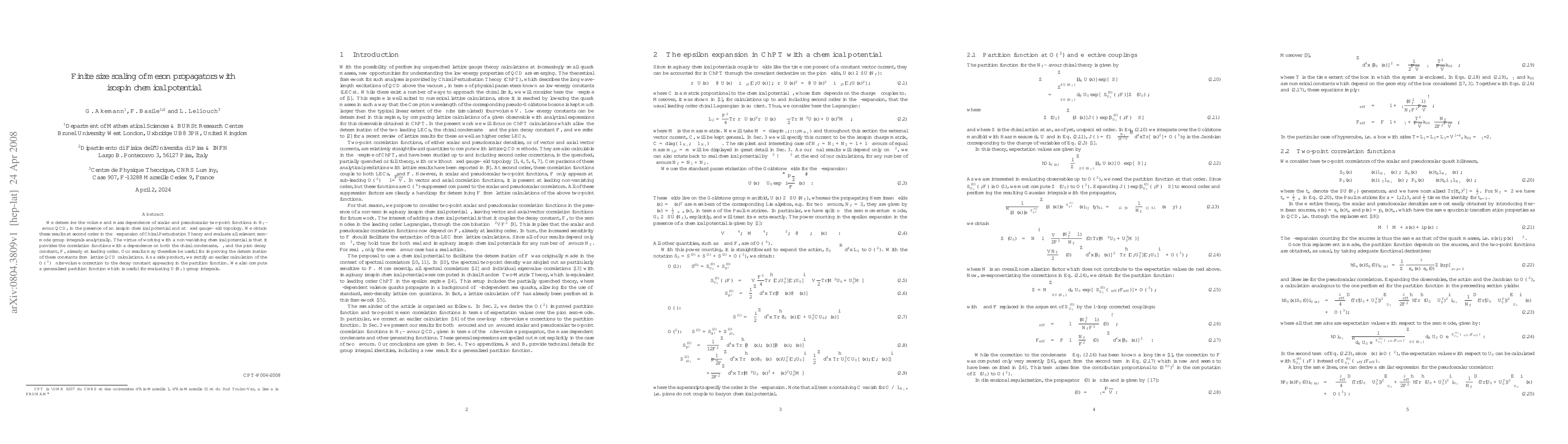 We determine the volume and mass dependence of scalar and pseudoscalar two-point functions in N_f-flavour QCD, in the presence of an isospin chemical potential and at fixed gauge-field topology. We obtain these results at second order in the \epsilon-expansion of Chiral Perturbation Theory and evaluate all relevant zero-mode group integrals analytically. The virtue of working with a non-vanishing chemical potential is that it provides the correlation functions with a dependence on both the chiral condensate, \Sigma, and the pion decay constant, F, already at leading order. Our results may therefore be useful for improving the determination of these constants from lattice QCD calculations. As a side product, we rectify an earlier calculation of the O(\epsilon^2) finite-volume correction to the decay constant appearing in the partition function. We also compute a generalised partition function which is useful for evaluating U(N_f) group integrals.