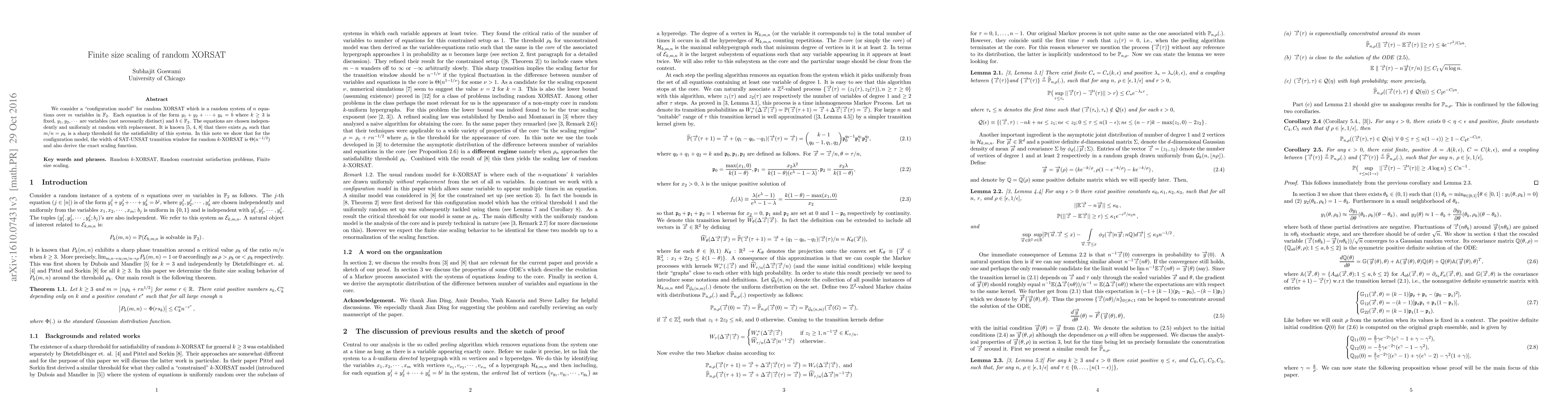 This paper examines random XORSAT, a system of equations over binary variables, and identifies a sharp threshold for its satisfiability. It demonstrates that the transition window's width between satisfiable and unsatisfiable instances scales as Θ(n^(-1/2)), providing an exact scaling function for the 'configuration model' of random k-XORSAT.