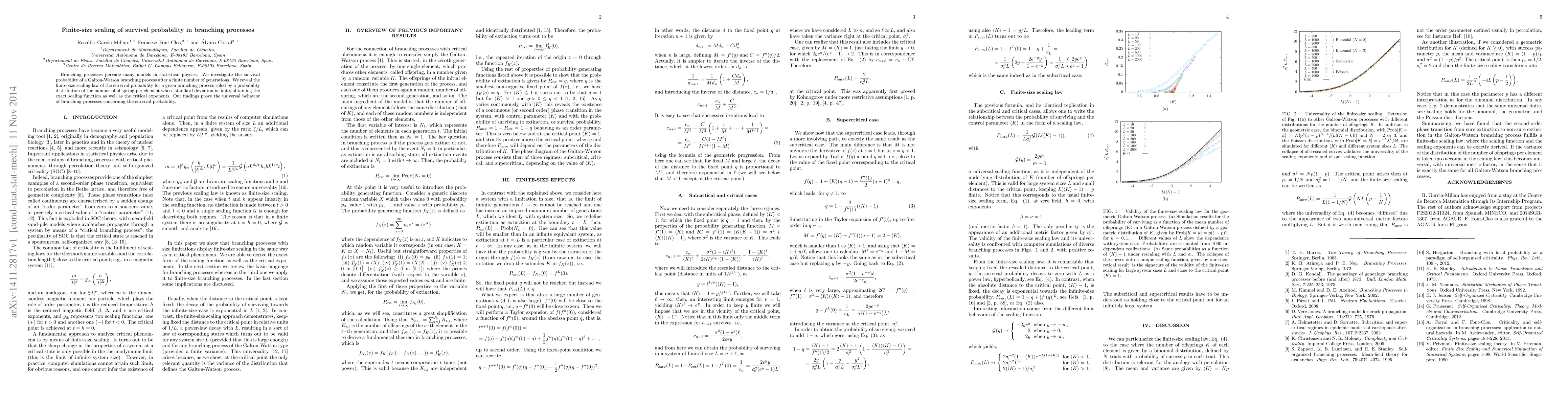 This study reveals the finite-size scaling law for the survival probability in Galton-Watson branching processes, deriving the exact scaling function and critical exponents, and demonstrating the universal behavior of such processes.