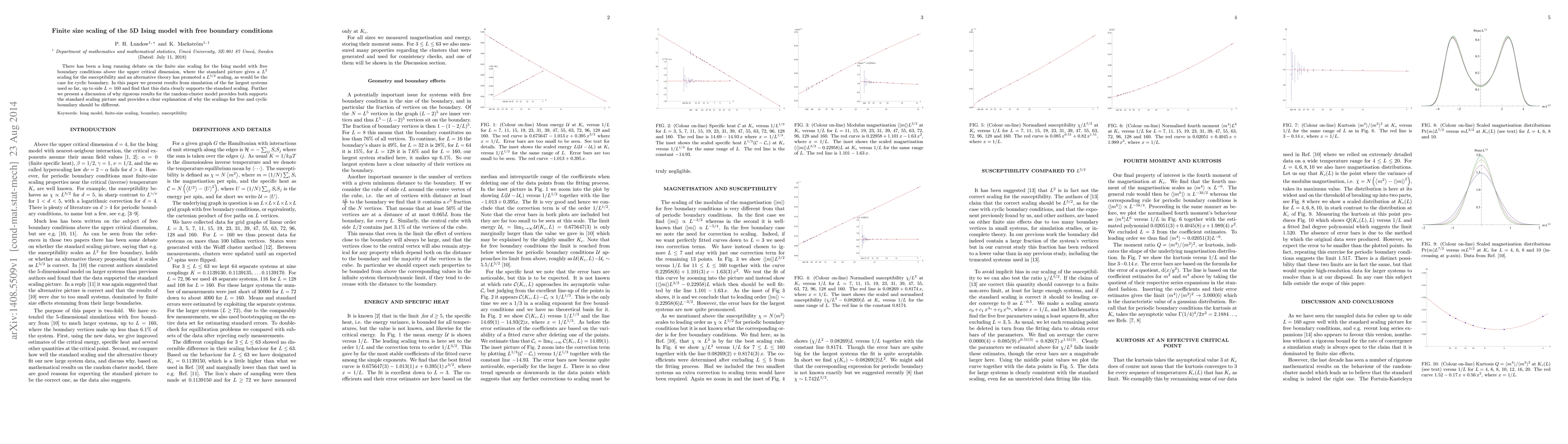 This paper investigates the finite size scaling behavior of the 5D Ising model with free boundary conditions, finding that simulations up to $L=160$ support the standard $L^2$ scaling for susceptibility, refuting the alternative $L^{5/2}$ scaling. It also discusses how the random-cluster model supports this standard scaling and explains the difference in scaling between free and cyclic boundary conditions.