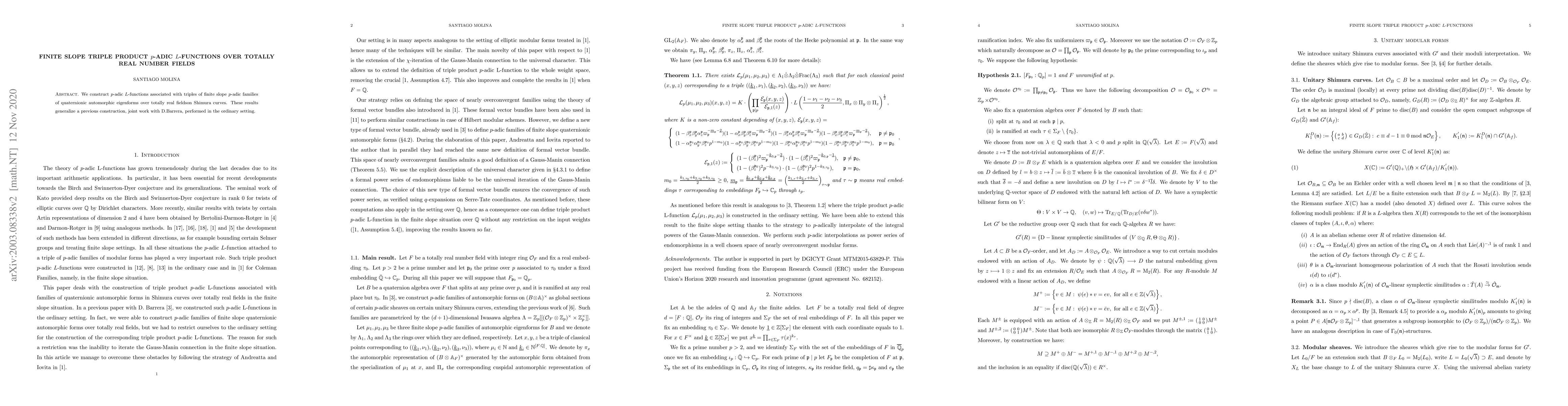 The paper constructs p-adic L-functions linked to triples of finite slope p-adic families of quaternionic automorphic eigenforms over totally real fields on Shimura curves, extending a prior construction in the ordinary setting in collaboration with D. Barrera.
