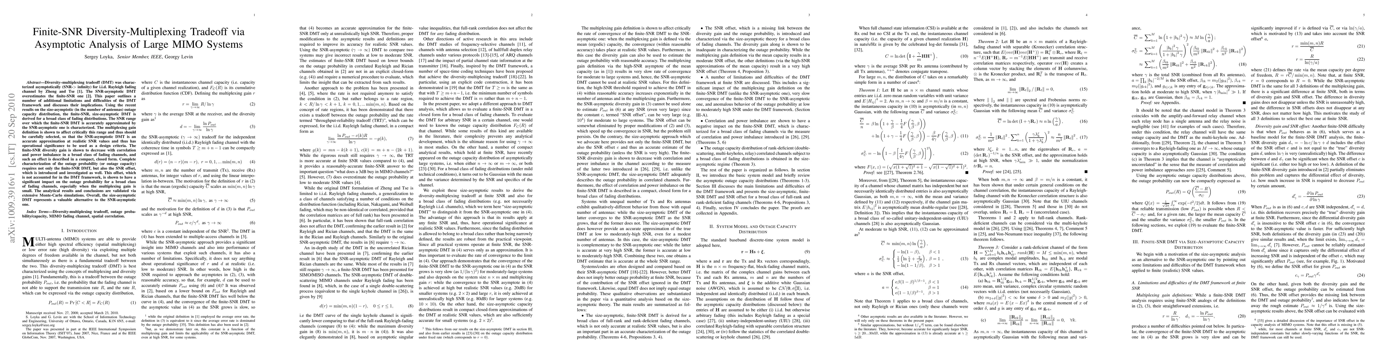 Diversity-multiplexing tradeoff (DMT) was characterized asymptotically (SNR-> infinity) for i.i.d. Rayleigh fading channel by Zheng and Tse [1]. The SNR-asymptotic DMT overestimates the finite-SNR one [2]. This paper outlines a number of additional limitations and difficulties of the DMT framework and discusses their implications. Using the recent results on the size-asymptotic (in the number of antennas) outage capacity distribution, the finite-SNR, size-asymptotic DMT is derived for a broad class of fading distributions. The SNR range over which the finite-SNR DMT is accurately approximated by the SNR-asymptotic one is characterized. The multiplexing gain definition is shown to affect critically this range and thus should be carefully selected, so that the SNR-asymptotic DMT is an accurate approximation at realistic SNR values and thus has operational significance to be used as a design criteria. The finite SNR diversity gain is shown to decrease with correlation and power imbalance in a broad class of fading channels, and such an effect is described in a compact, closed form. Complete characterization of the outage probability (or outage capacity) requires not only the finite-SNR DMT, but also the SNR offset, which is introduced and investigated as well. This offset, which is not accounted for in the DMT framework, is shown to have a significant impact on the outage probability for a broad class of fading channels, especially when the multiplexing gain is small. The analytical results and conclusions are validated via extensive Monte-Carlo simulations. Overall, the size-asymptotic DMT represents a valuable alternative to the SNR-asymptotic one.