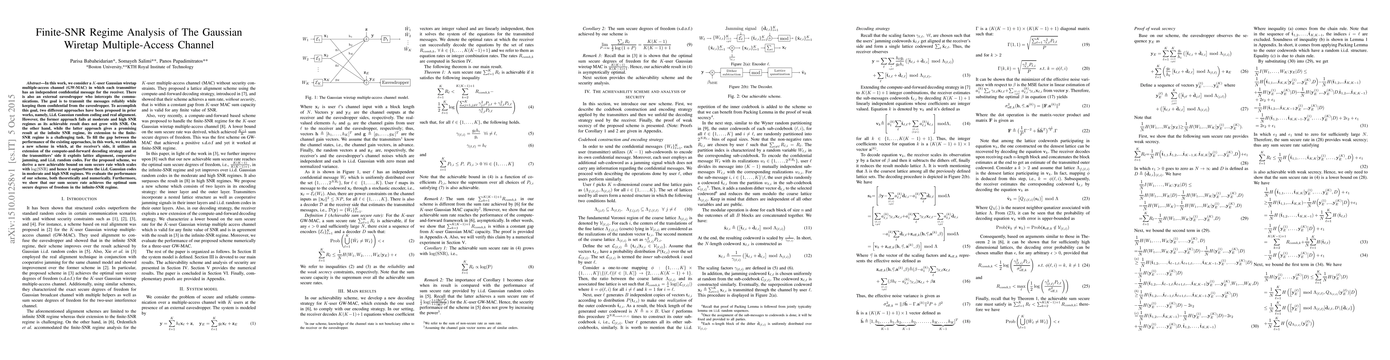 In this work, we consider a K-user Gaussian wiretap multiple-access channel (GW-MAC) in which each transmitter has an independent confidential message for the receiver. There is also an external eavesdropper who intercepts the communications. The goal is to transmit the messages reliably while keeping them confidential from the eavesdropper. To accomplish this goal, two different approaches have been proposed in prior works, namely, i.i.d. Gaussian random coding and real alignment. However, the former approach fails at moderate and high SNR regimes as its achievable result does not grow with SNR. On the other hand, while the latter approach gives a promising result at the infinite SNR regime, its extension to the finite-SNR regime is a challenging task. To fill the gap between the performance of the existing approaches, in this work, we establish a new scheme in which, at the receiver's side, it utilizes an extension of the compute-and-forward decoding strategy and at the transmitters' side it exploits lattice alignment, cooperative jamming, and i.i.d. random codes. For the proposed scheme, we derive a new achievable bound on sum secure rate which scales with log(SNR) and hence it outperforms the i.i.d. Gaussian codes in moderate and high SNR regimes. We evaluate the performance of our scheme, both theoretically and numerically. Furthermore, we show that our sum secure rate achieves the optimal sum secure degrees of freedom in the infinite-SNR regime.