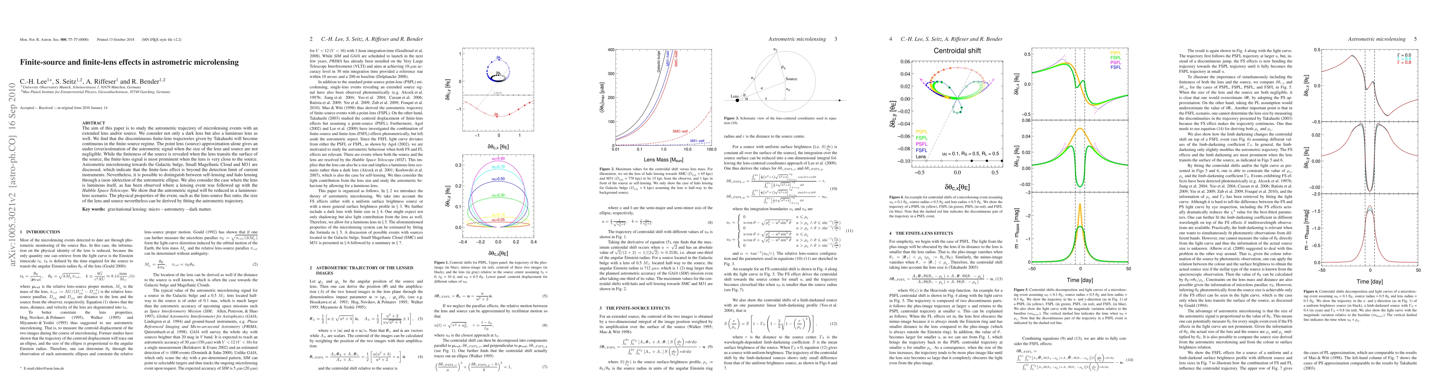 This paper investigates the astrometric effects of microlensing events with extended lenses and sources, showing that finite-lens and finite-source effects make the trajectories continuous and modify the astrometric signal. It concludes that the current instruments cannot detect these finite-lens effects but can distinguish between self-lensing and halo lensing via astrometric ellipse detection.
