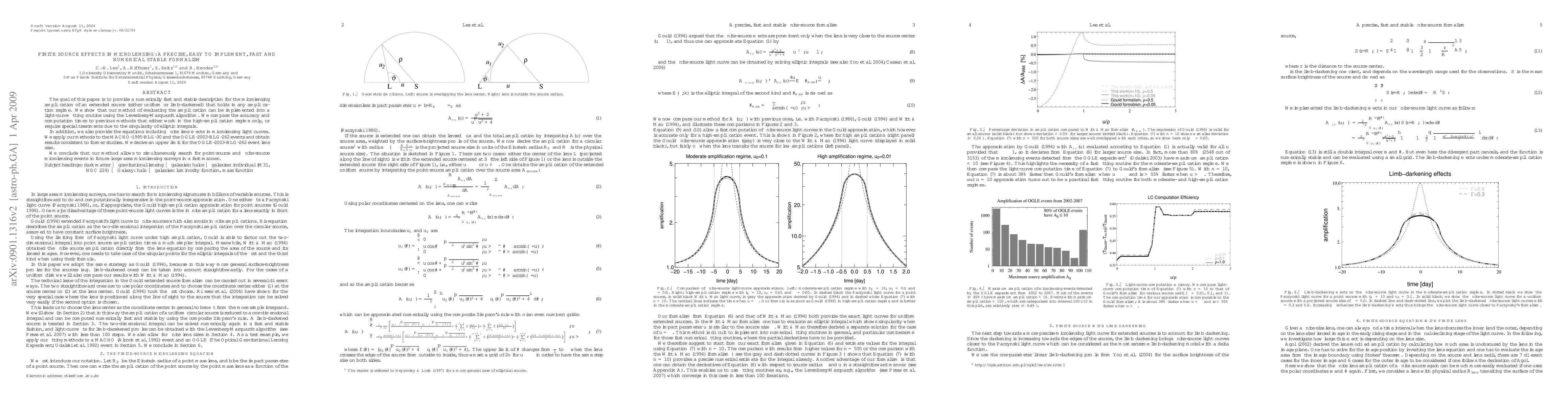 The goal of this paper is to provide a numerically fast and stable description for the microlensing amplification of an extended source (either uniform or limb-darkened) that holds in any amplification regime. We show that our method of evaluating the amplification can be implemented into a light-curve fitting routine using the Levenberg-Marquardt algorithm. We compare the accuracy and computation times to previous methods that either work in the high-amplification regime only, or require special treatments due to the singularity of elliptic integrals. In addition, we also provide the equations including finite lens effects in microlensing light curves. We apply our methods to the MACHO-1995-BLG-30 and the OGLE-2003-BLG-262 events and obtain results consistent to former studies. We derive an upper limit for the OGLE-2003-BLG-262 event lens size. We conclude that our method allows to simultaneously search for point-source and finite-source microlensing events in future large area microlensing surveys in a fast manner.