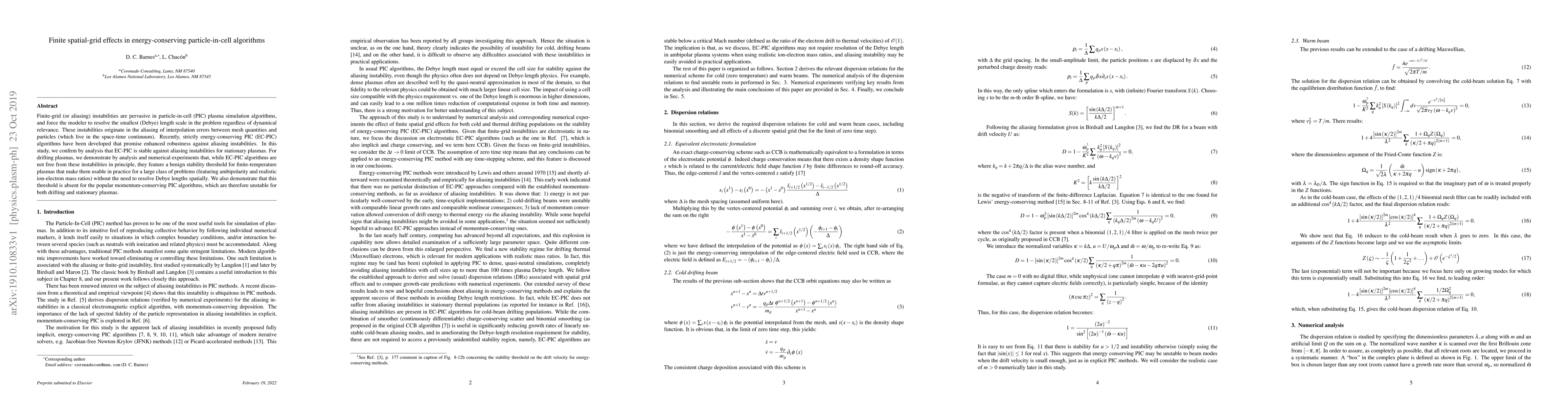 Researchers found that energy-conserving particle-in-cell algorithms can stabilize finite-grid effects in plasma simulations for certain conditions, offering a practical solution without resolving Debye lengths.