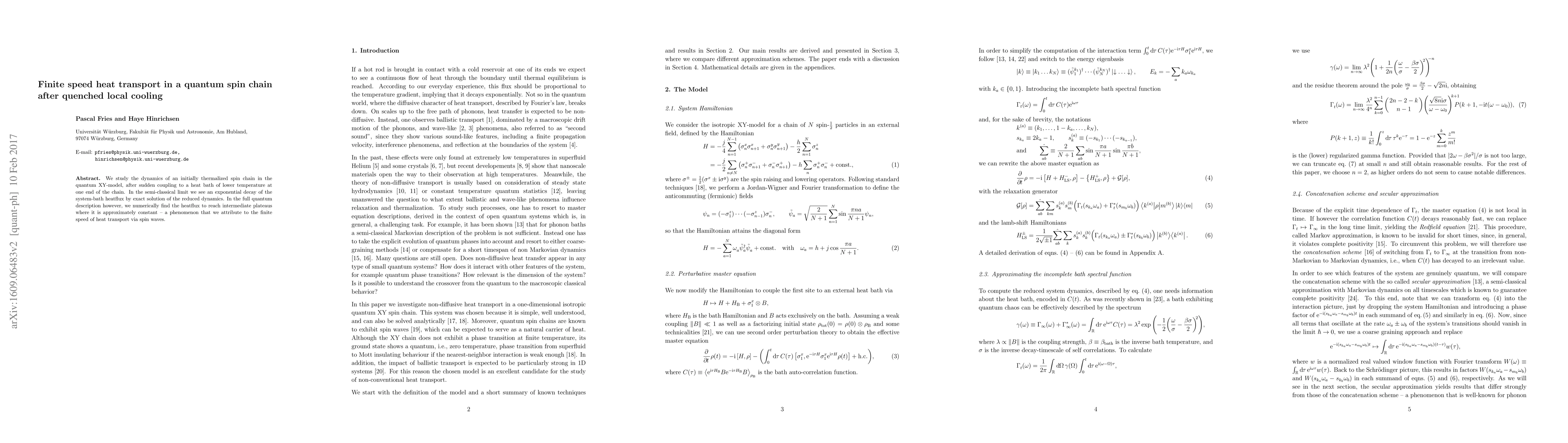 This paper investigates the heat transport dynamics in a quantum spin chain after local cooling, revealing an exponential decay in the semi-classical limit but finding intermediate plateaus in the full quantum description due to the finite speed of heat transport through spin waves.