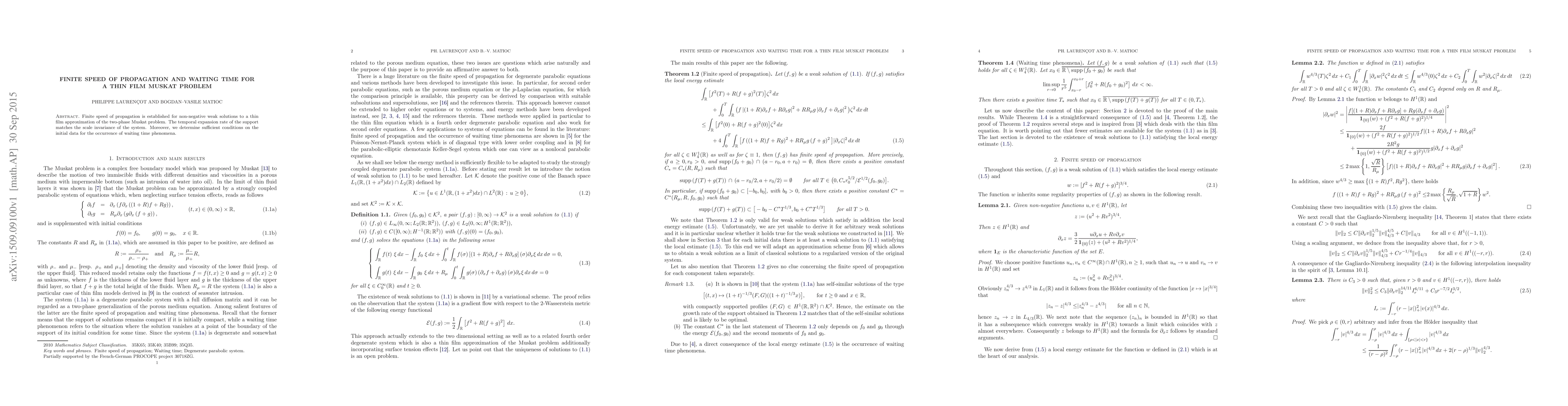 This paper establishes finite speed of propagation for non-negative weak solutions to a thin film Muskat problem, showing that the temporal expansion rate of the solution's support aligns with the system's scale invariance. It also identifies conditions on initial data that lead to waiting time phenomena.