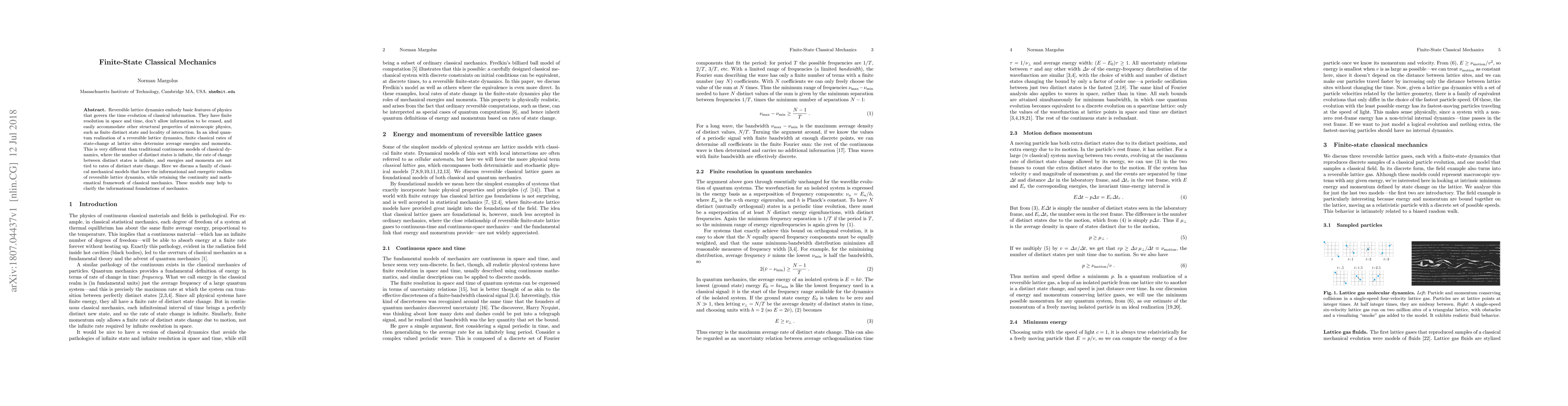 This paper explores finite-state classical mechanical models that incorporate reversible lattice dynamics, emphasizing finite resolution and information preservation. These models contrast with traditional continuous classical dynamics by linking average energies and momenta to finite classical rates of state-change, potentially clarifying the informational foundations of mechanics.