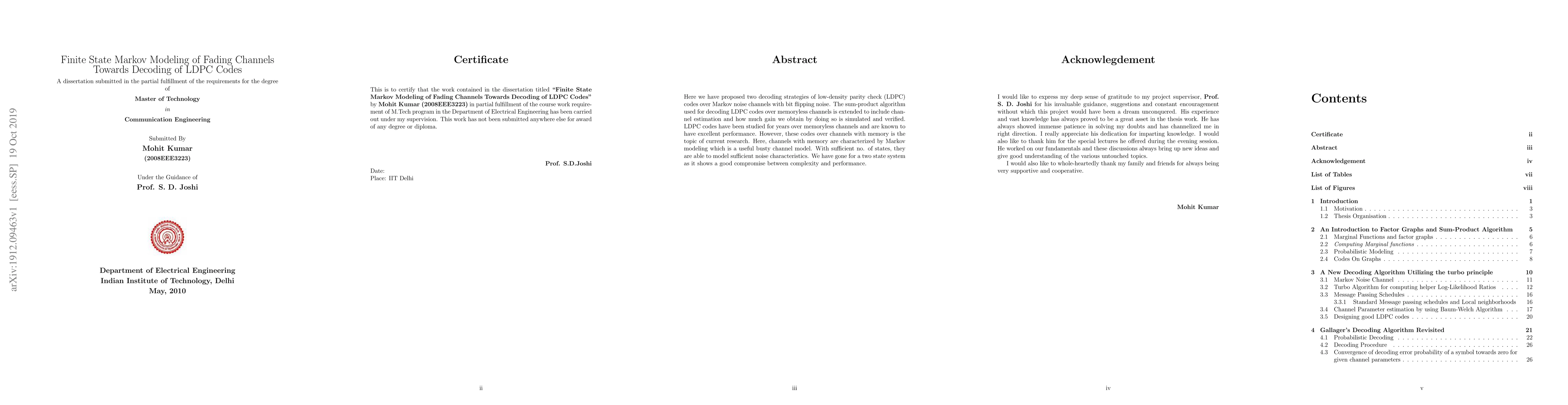 Here we have proposed two decoding strategies of low-density parity-check (LDPC) codes over Markov noise channels with bit flipping noise. The sum-product algorithm used for decoding LDPC codes over memoryless channels is extended to include channel estimation and how much gain we obtain by doing so is simulated and verified. LDPC codes have been studied for years over memoryless channels and are known to have excellent performance. However, these codes over channels with memory is the topic of current research. Here, channels with memory are characterized by Markov modeling which is a useful busty channel model. With sufficient no. of states, they are able to model sufficient noise characteristics. We have gone for a two-state system as it shows a good compromise between complexity and performance.