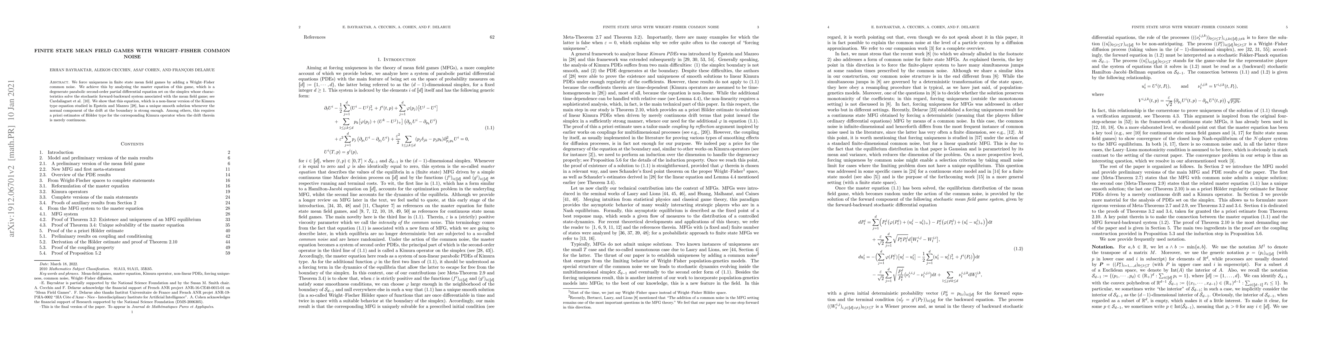 This paper establishes uniqueness in finite state mean field games by incorporating Wright-Fisher common noise, proving that the associated degenerate parabolic PDE has a unique smooth solution under certain boundary drift conditions. The analysis involves a priori H\"older estimates for the Kimura operator.