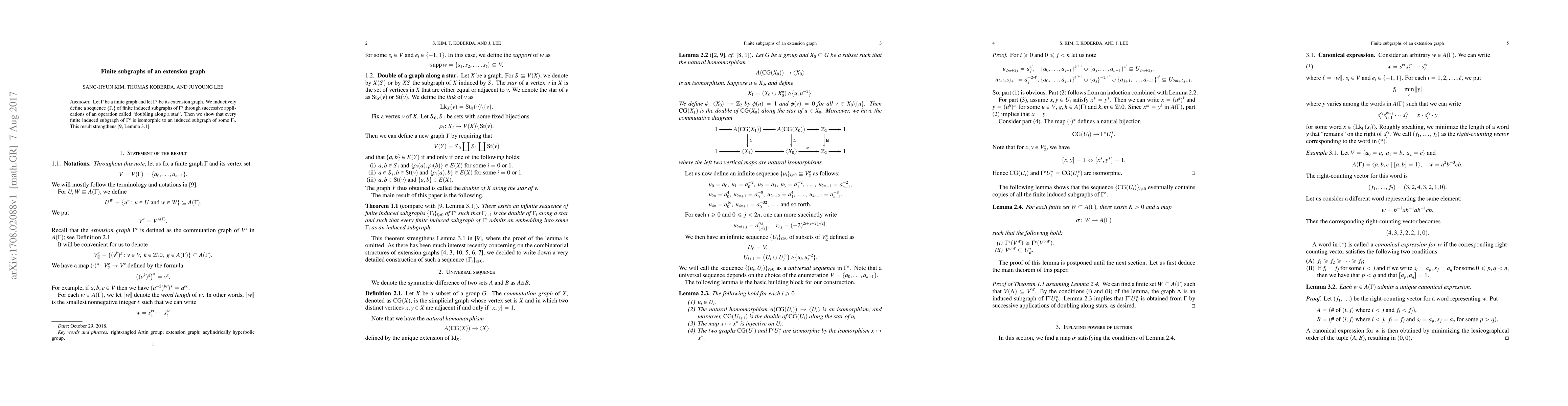 A research paper introduces a method to create finite subgraphs of an extension graph through iterative 'doubling along a star' operations, showing that every finite induced subgraph is isomorphic to some resulting subgraph.