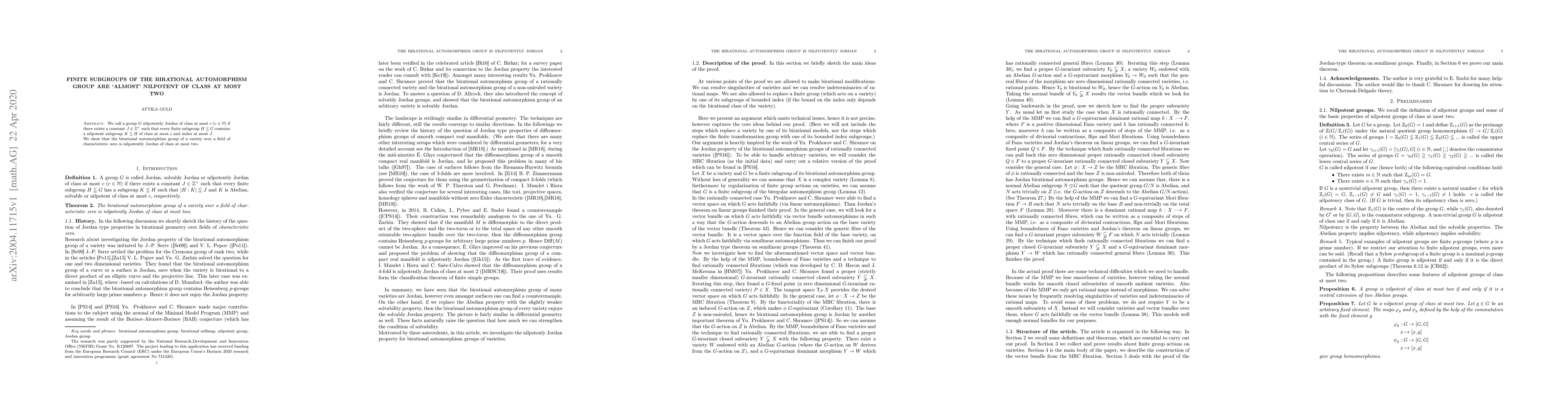 This research demonstrates that the birational automorphism group of a variety over a field of characteristic zero is 'nilpotently Jordan' of class at most two, meaning every finite subgroup contains a nilpotent subgroup of limited class and index. This establishes a significant structure on these groups.