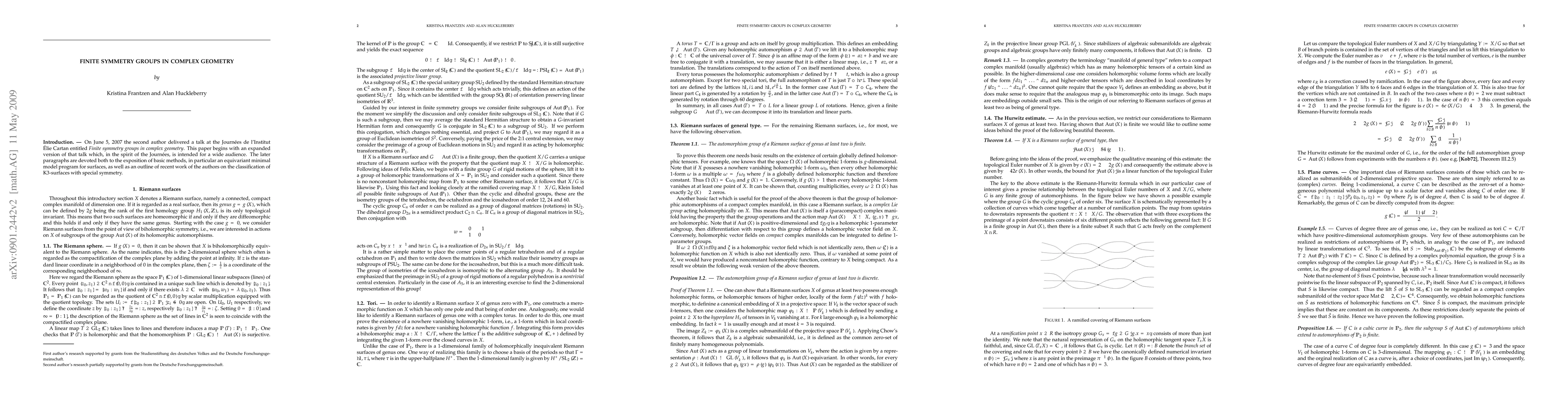 On June 5, 2007 the second author delivered a talk at the Journees de l'Institut Elie Cartan entitled "Finite symmetry groups in complex geometry". This paper begins with an expanded version of that talk which, in the spirit of the Journees, is intended for a wide audience. The later paragraphs are devoted both to the exposition of basic methods, in particular an equivariant minimal model program for surfaces, as well as an outline of recent work of the authors on the classification of K3-surfaces with special symmetry.