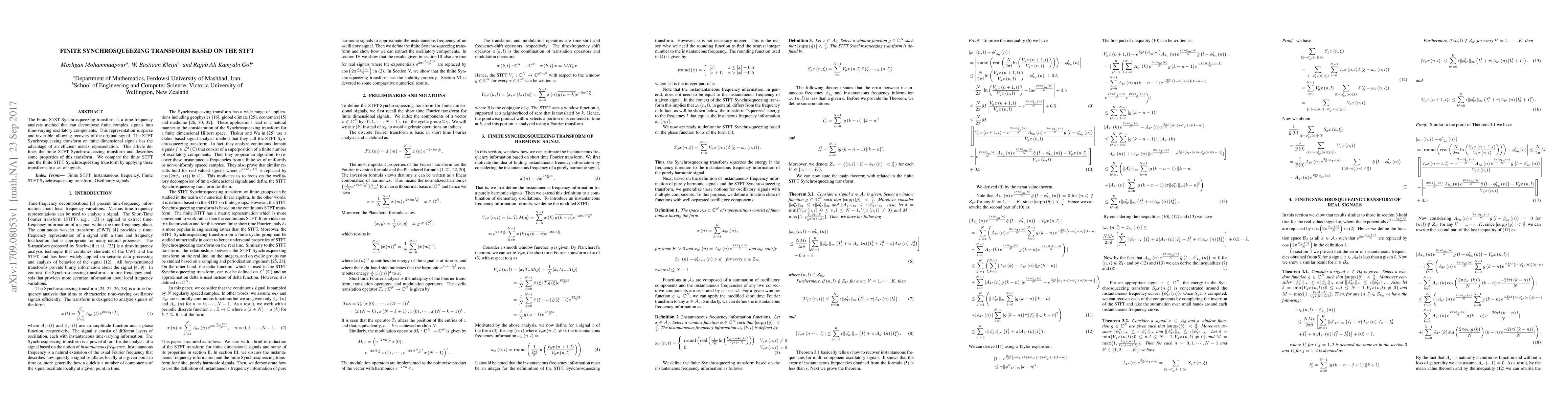 The finite STFT Synchrosqueezing transform decomposes complex signals into sparse, time-varying oscillatory components, enabling efficient matrix representation and signal recovery. This study compares the finite STFT and the finite STFT Synchrosqueezing transform through practical signal applications.