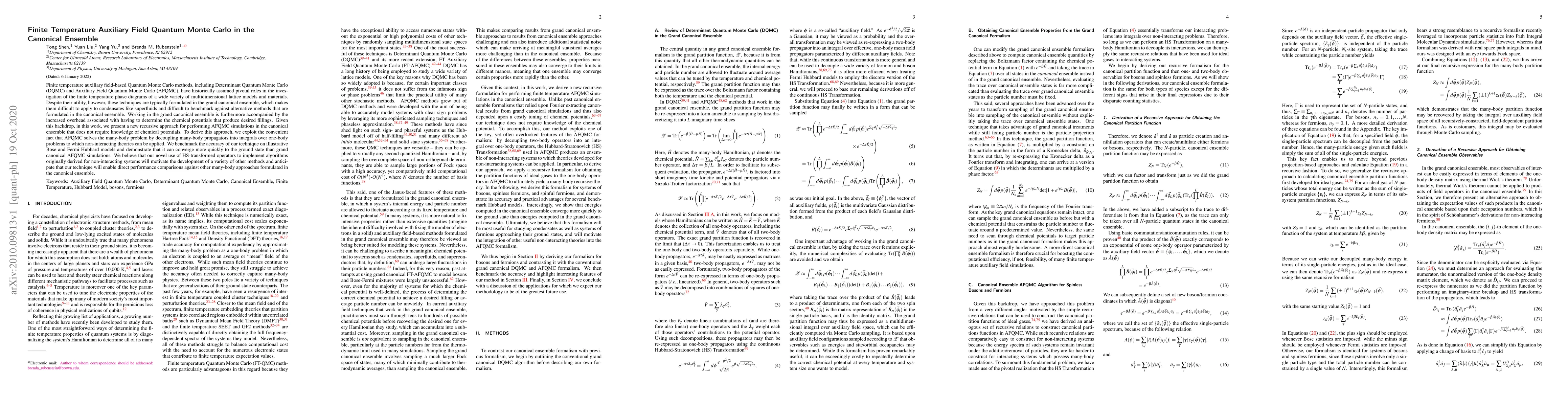 This paper introduces a new recursive approach for performing Auxiliary Field Quantum Monte Carlo (AFQMC) simulations in the canonical ensemble, circumventing the need for chemical potentials and facilitating comparison with canonical ensemble methods. The technique leverages HS-transformed operators and is benchmarked on Bose and Fermi Hubbard models, showing faster convergence to the ground state than grand canonical ensemble methods.