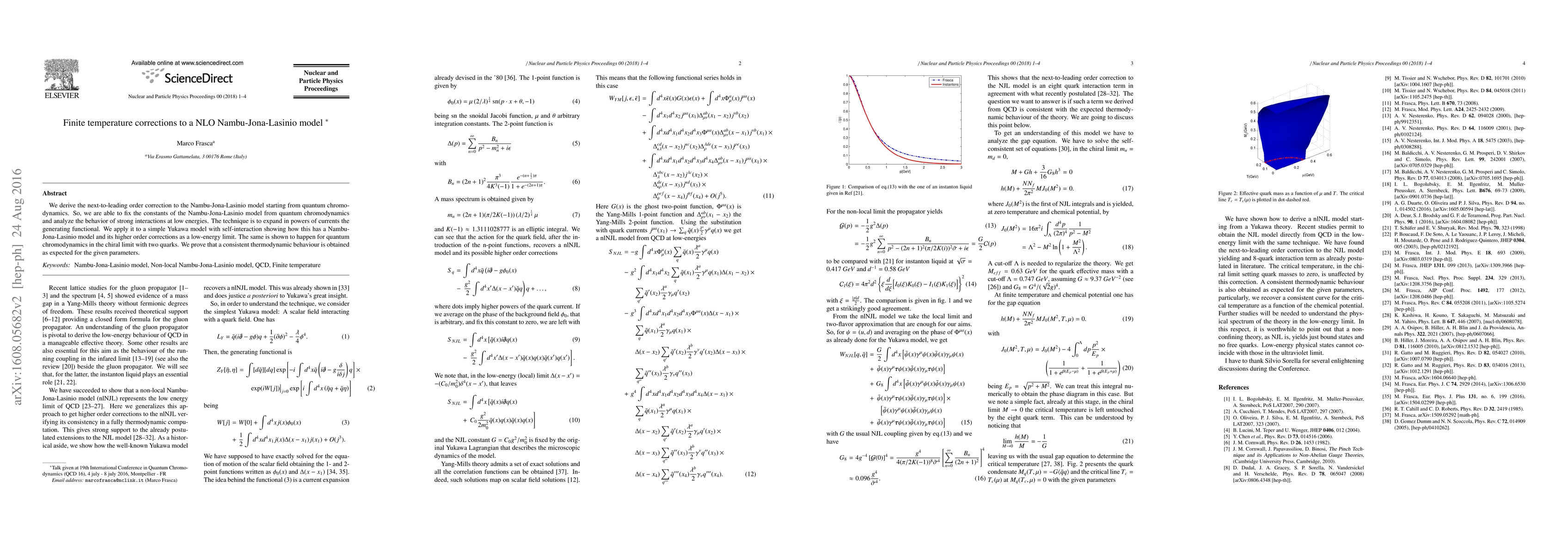 This paper derives next-to-leading order corrections to the Nambu-Jona-Lasinio model, originating from quantum chromodynamics, to analyze low-energy strong interactions. It employs an expansion technique to demonstrate the model's consistency and thermodynamic behavior at finite temperatures.