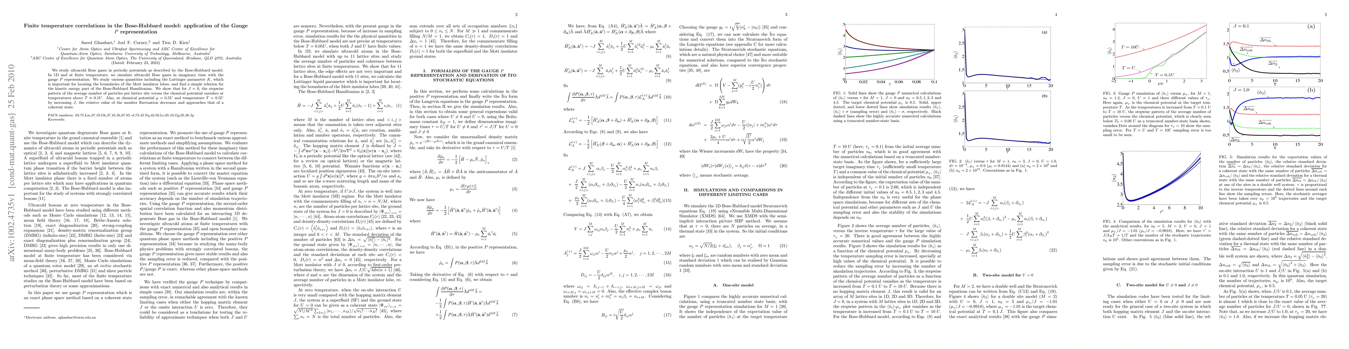 We study ultracold Bose gases in periodic potentials as described by the Bose-Hubbard model. In 1D and at finite temperature, we simulate ultracold Bose gases in imaginary time with the gauge $P$ representation. We study various quantities including the Luttinger parameter $K$, which is important for locating the boundaries of the Mott insulator lobes, and find a simple relation for the kinetic energy part of the Bose-Hubbard Hamiltonian. We show that for J=0, the stepwise pattern of the average number of particles per lattice site versus the chemical potential vanishes at temperatures above $T \approx 0.1 U$. Also, at chemical potential $\mu=0.5 U$ and temperature $T=0.5 U$ by increasing $J$, the relative value of the number fluctuation decreases and approaches that of a coherent state.