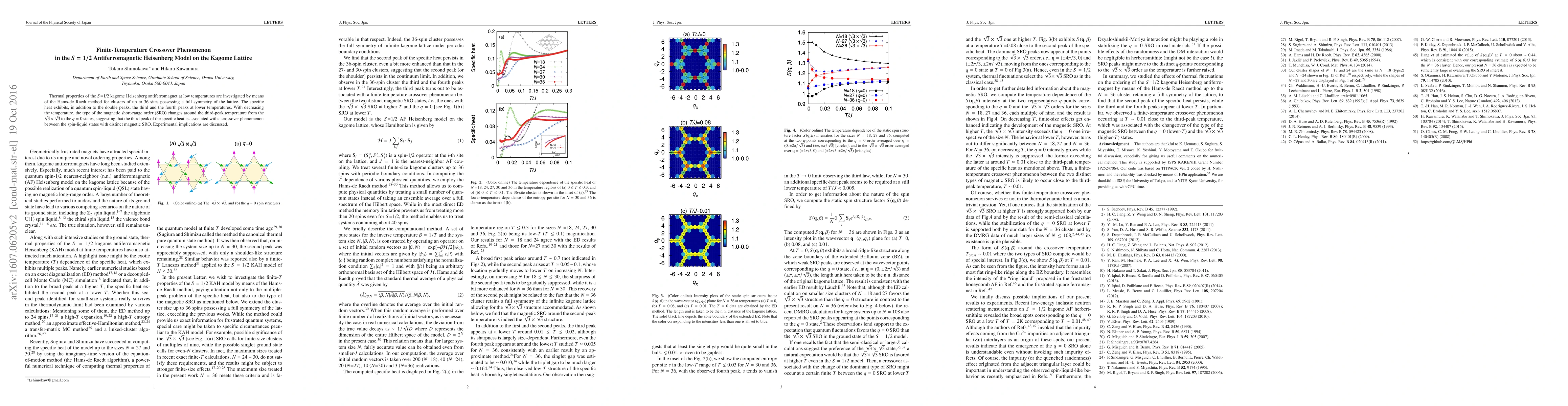 This study investigates the thermal properties of the $S=1/2$ kagome Heisenberg antiferromagnet using the Hams-de Raedt method, revealing specific heat peaks indicative of a finite-temperature crossover phenomenon. The transition in magnetic short-range order around the third-peak temperature suggests a shift between different spin-liquid states.