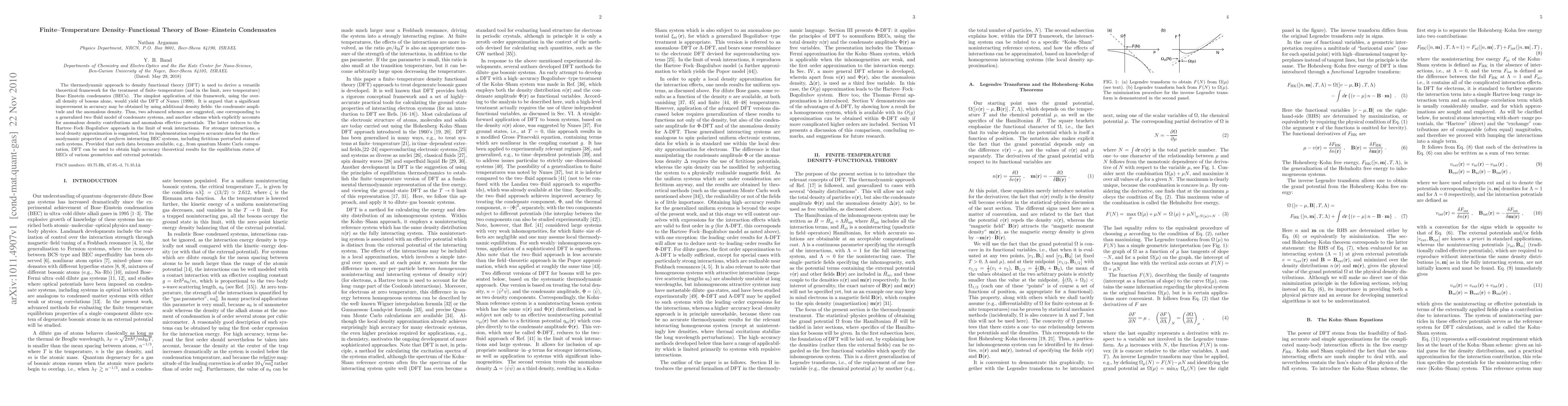 This paper develops a finite-temperature density functional theory framework for Bose-Einstein condensates, proposing advanced schemes that utilize condensate amplitude and anomalous density for improved accuracy over traditional methods. It suggests that accurate thermodynamic data, potentially from quantum Monte Carlo computations, is essential for high-precision theoretical results on the equilibrium states of BECs.
