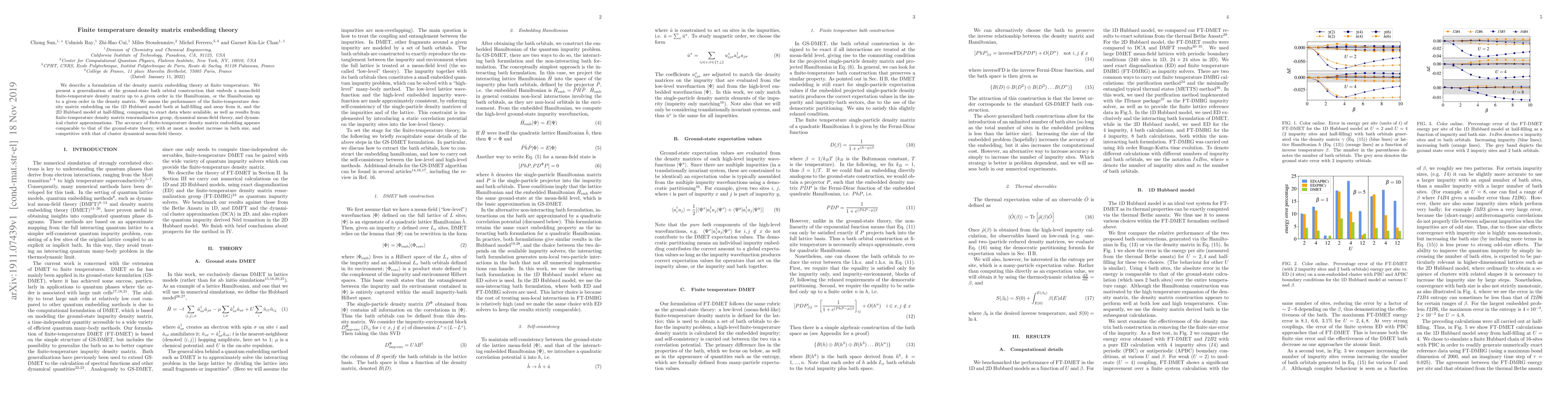 This paper presents a finite-temperature extension of density matrix embedding theory, comparing its performance to exact data and other methods on the 1D and 2D Hubbard models. The method shows comparable accuracy to ground-state theory and competitive results with cluster dynamical mean-field theory.