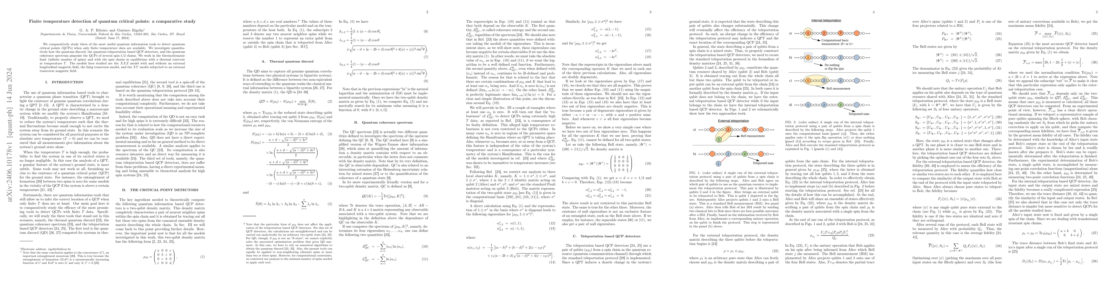 We comparatively study three of the most useful quantum information tools to detect quantum critical points (QCPs) when only finite temperature data are available. We investigate quantitatively how the quantum discord, the quantum teleportation based QCP detectors, and the quantum coherence spectrum pinpoint the QCPs of several spin-$1/2$ chains. We work in the thermodynamic limit (infinite number of spins) and with the spin chains in equilibrium with a thermal reservoir at temperature $T$. The models here studied are the $XXZ$ model with and without an external longitudinal magnetic field, the Ising transverse model, and the $XY$ model subjected to an external transverse magnetic field.