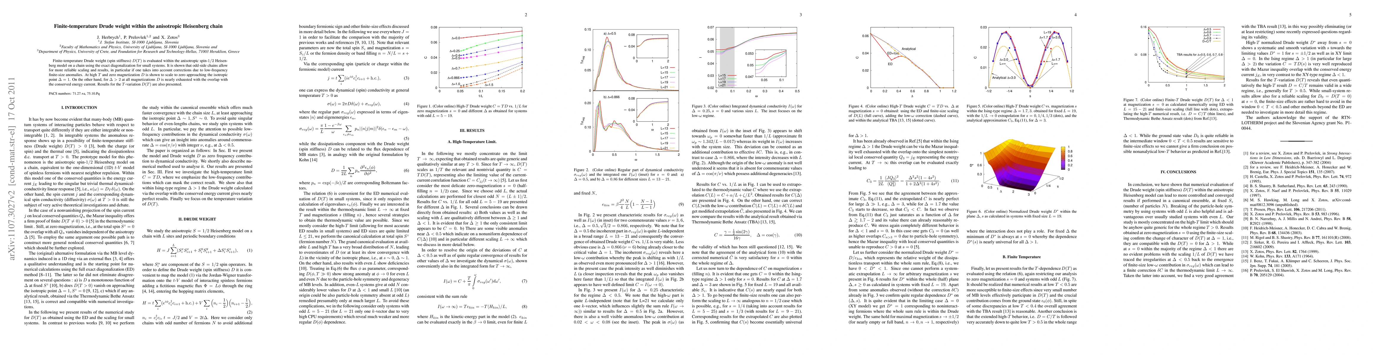 This paper evaluates the finite-temperature Drude weight in the anisotropic spin-1/2 Heisenberg chain using exact diagonalization. It finds that odd-length chains provide more reliable scaling and results, especially when accounting for low-frequency anomalies, and shows that the Drude weight approaches zero at high temperatures near the isotropic point.