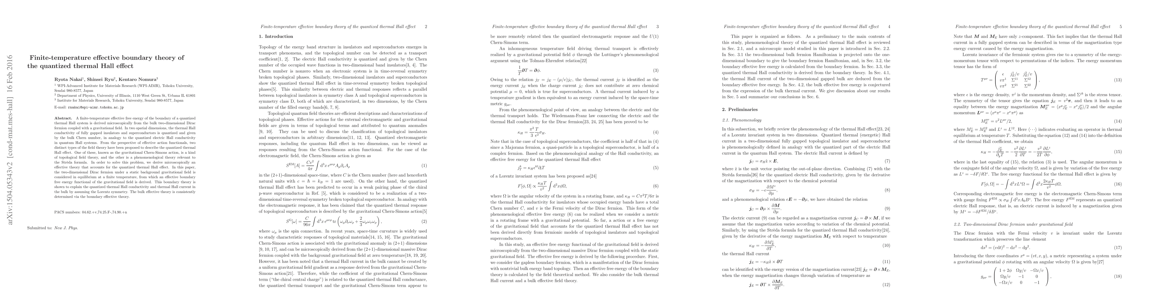 This paper derives a finite-temperature effective boundary theory for the quantized thermal Hall effect from a two-dimensional Dirac fermion system coupled with gravity. The study reveals that the thermal Hall conductivity in gapped insulators and superconductors is quantized, analogous to the quantum Hall effect, and proposes an effective boundary free energy functional that explains the observed thermal Hall current.