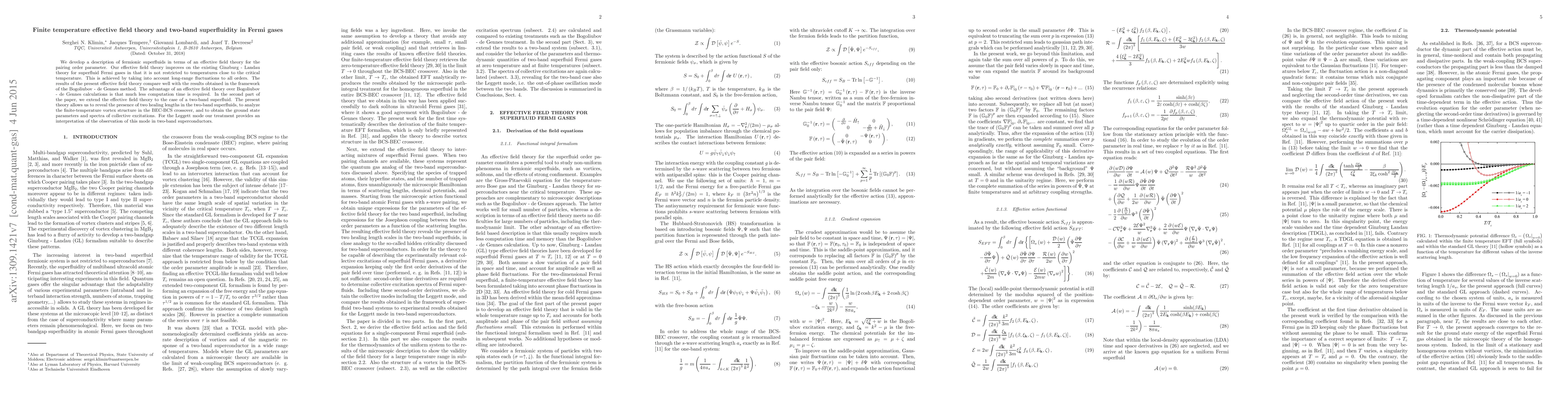 This paper develops an effective field theory for fermionic superfluids, improving upon Ginzburg-Landau theory by accounting for long-range fluctuations at finite temperatures. It also extends the theory to two-band superfluids, revealing distinct healing lengths and analyzing vortex structures, while requiring less computational effort than Bogoliubov-de Gennes methods.