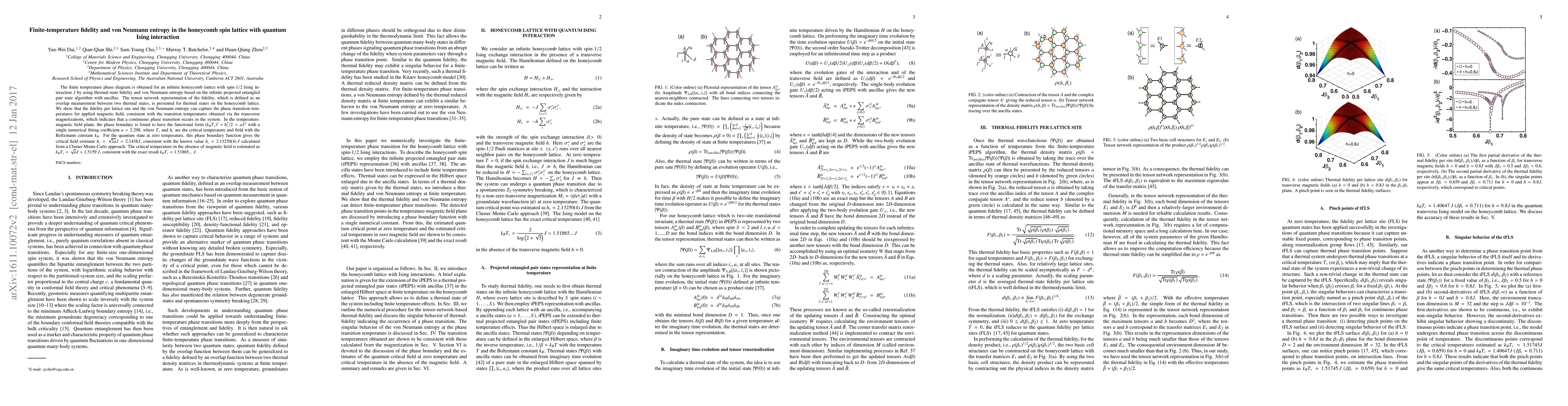 This paper investigates the finite-temperature phase diagram of a honeycomb spin lattice with quantum Ising interaction using fidelity and von Neumann entropy. The study reveals a continuous phase transition characterized by a phase boundary function, with critical temperature and field estimates matching known values.
