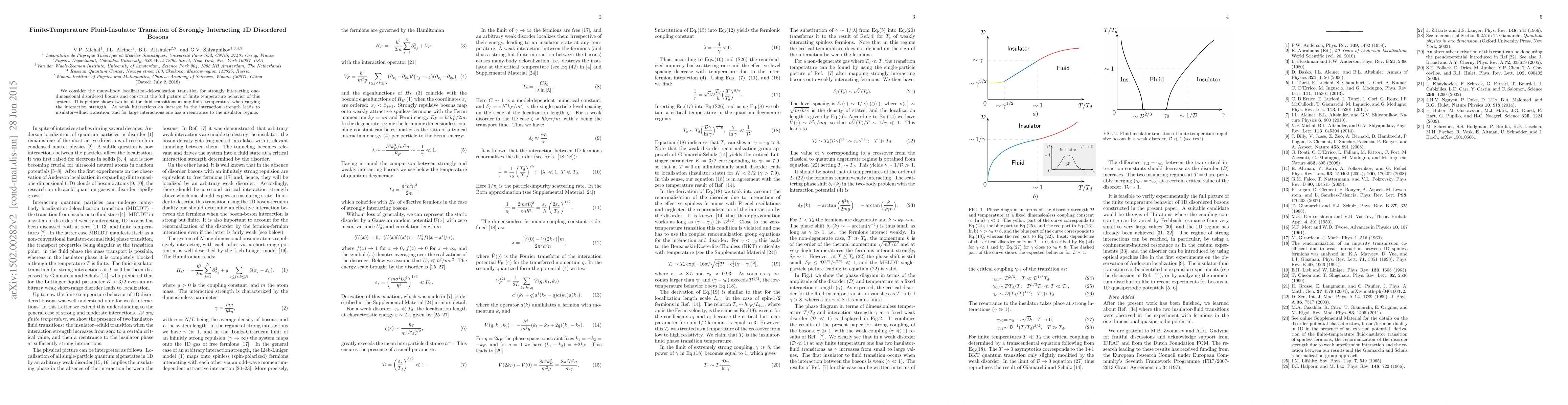 This paper explores the finite-temperature behavior of strongly interacting one-dimensional disordered bosons, revealing two insulator-fluid transitions at any finite temperature depending on the interaction strength, with a reentrant insulator phase at large interactions.