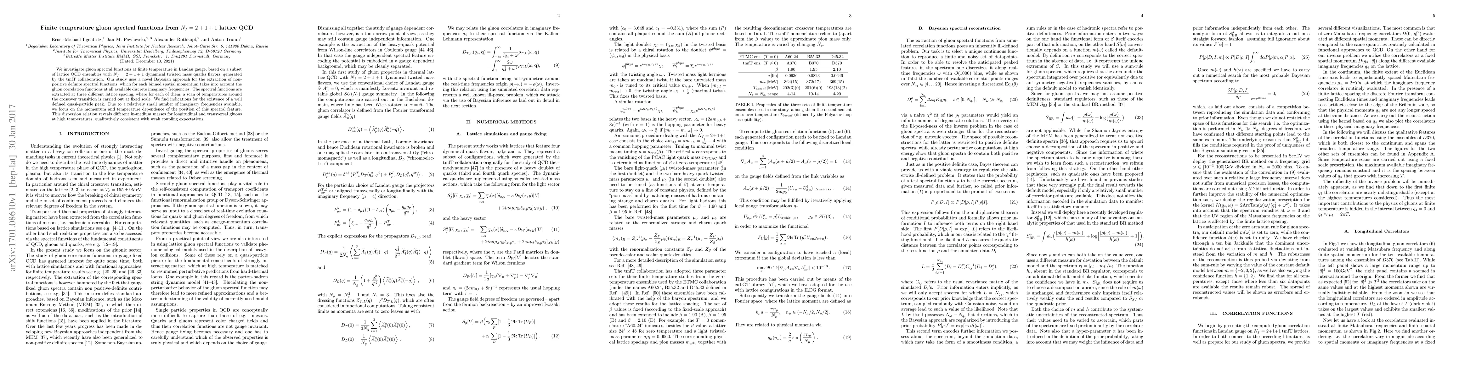This study investigates gluon spectral functions at finite temperature using $N_f=2+1+1$ lattice QCD ensembles, employing a novel Bayesian approach to extract non-positive definite spectral functions. Results indicate a well-defined quasi-particle peak, revealing different in-medium masses for longitudinal and transversal gluons at high temperatures, consistent with weak coupling expectations.