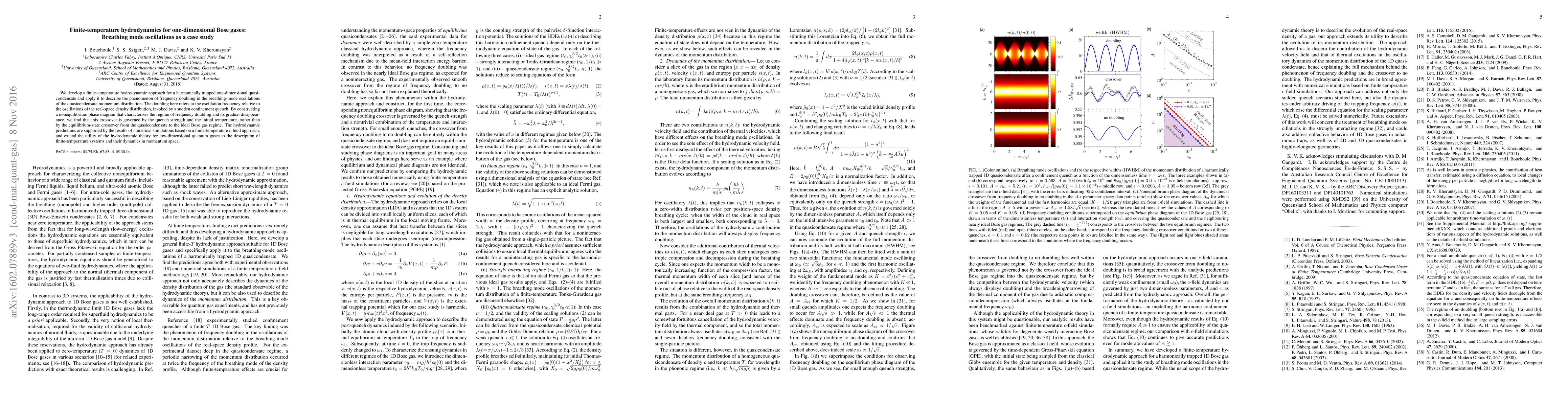 This paper develops a finite-temperature hydrodynamic model for a one-dimensional Bose gas, demonstrating its application to breathing-mode oscillations. It reveals that frequency doubling in momentum distribution oscillations is influenced by quench strength and initial temperature, rather than the transition from an ideal Bose gas to a quasicondensate.