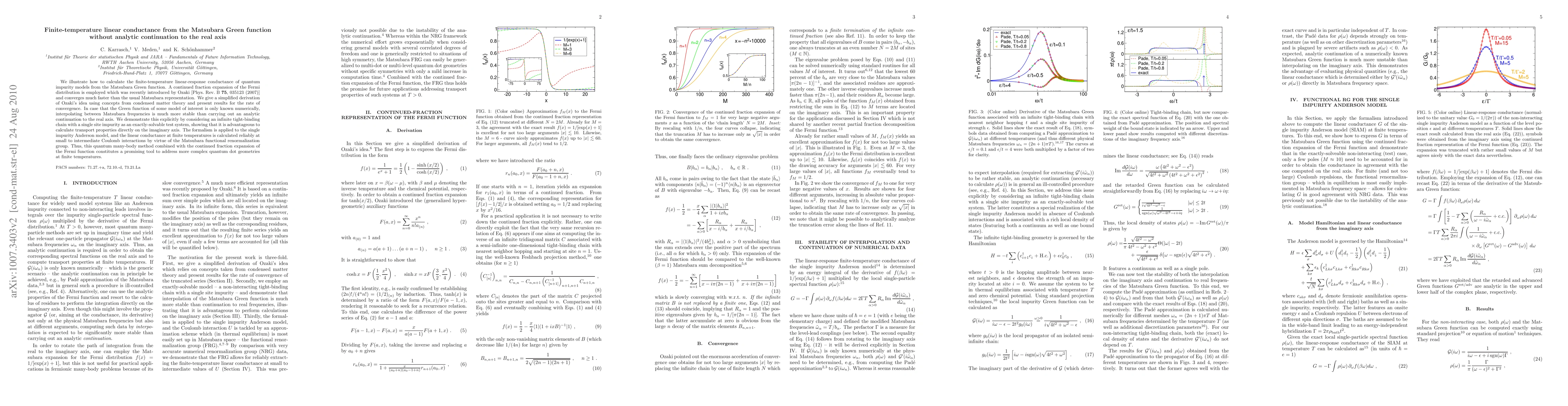 We illustrate how to calculate the finite-temperature linear-response conductance of quantum impurity models from the Matsubara Green function. A continued fraction expansion of the Fermi distribution is employed which was recently introduced by Ozaki [Phys. Rev. B 75, 035123 (2007)] and converges much faster than the usual Matsubara representation. We give a simplified derivation of Ozaki's idea using concepts from many-body condensed matter theory and present results for the rate of convergence. In case that the Green function of some model of interest is only known numerically, interpolating between Matsubara frequencies is much more stable than carrying out an analytic continuation to the real axis. We demonstrate this explicitly by considering an infinite tight-binding chain with a single site impurity as an exactly-solvable test system, showing that it is advantageous to calculate transport properties directly on the imaginary axis. The formalism is applied to the single impurity Anderson model, and the linear conductance at finite temperatures is calculated reliably at small to intermediate Coulomb interactions by virtue of the Matsubara functional renormalization group. Thus, this quantum many-body method combined with the continued fraction expansion of the Fermi function constitutes a promising tool to address more complex quantum dot geometries at finite temperatures.