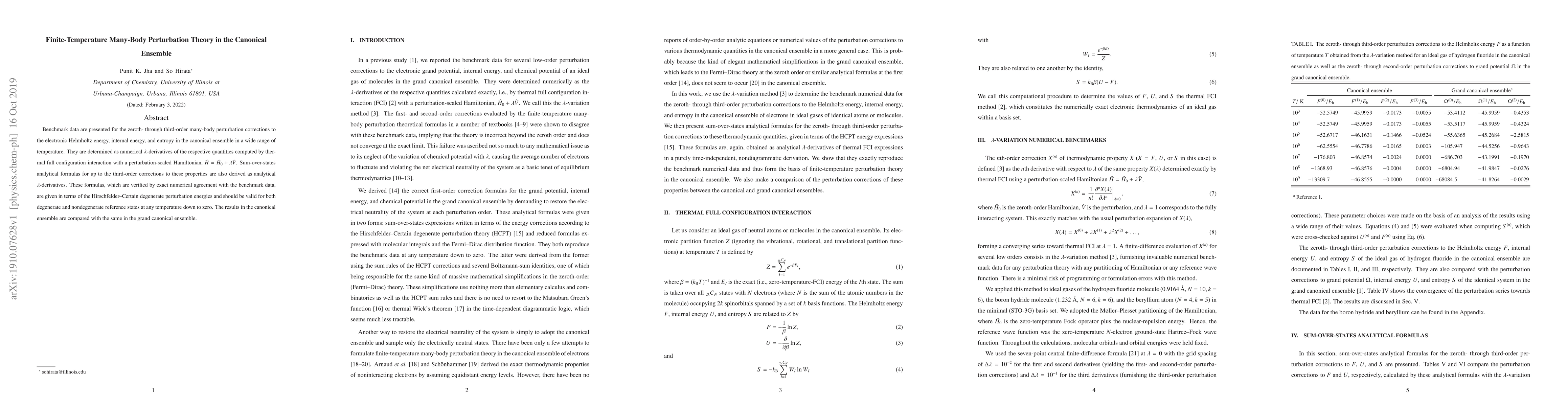 This paper presents benchmark data for many-body perturbation theory corrections up to the third order in the canonical ensemble, computed via thermal full configuration interaction. Analytical formulas for these corrections are derived and verified against numerical data, applicable to both degenerate and nondegenerate states across all temperatures.