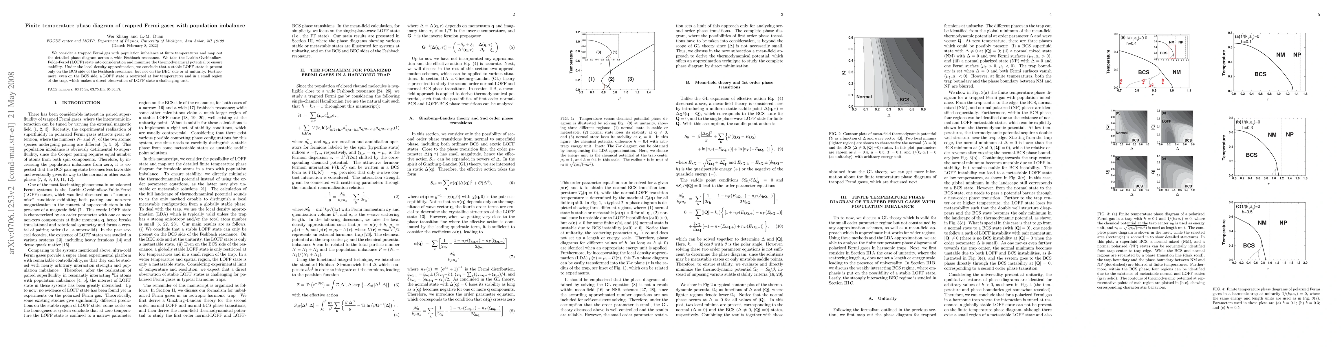 This paper maps out the finite temperature phase diagram of trapped Fermi gases with population imbalance, finding that the Larkin-Ovchinnikov-Fulde-Ferrel (LOFF) state is stable only on the BCS side of the Feshbach resonance at low temperatures and in a limited region of the trap. Direct observation of the LOFF state is deemed challenging due to these conditions.