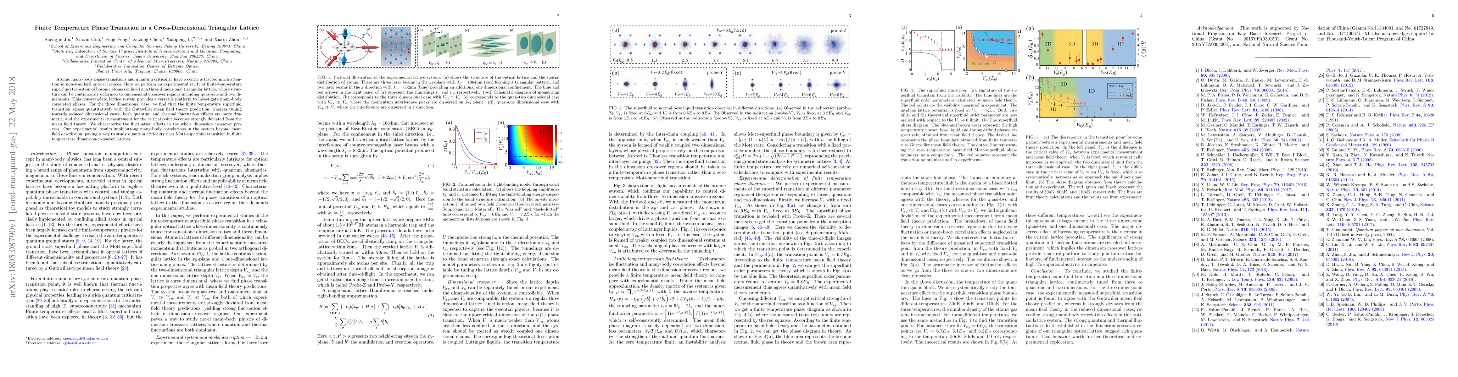 This research experimentally investigates the finite-temperature superfluid transition in bosonic atoms within a three-dimensional triangular optical lattice, finding agreement with Gutzwiller mean field theory. As the lattice is tuned to quasi-one and two dimensions, significant deviations from mean field predictions emerge, highlighting strong many-body correlations and the potential for studying quantum criticality near the Mott-superfluid transition.