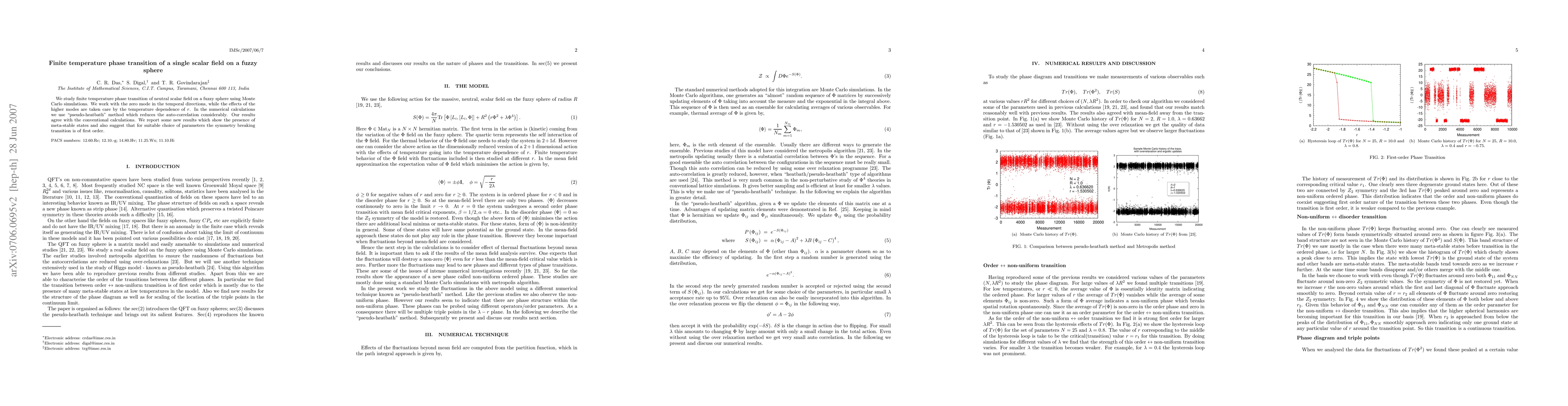 Researchers studied a single scalar field on a fuzzy sphere at finite temperatures using Monte Carlo simulations, finding evidence of meta-stable states and first-order symmetry breaking transitions.