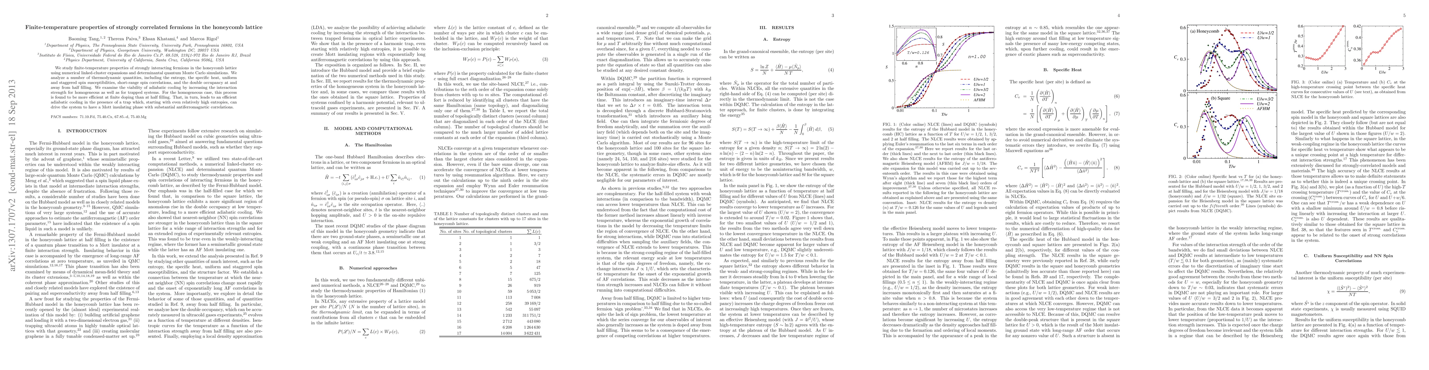 This research investigates the finite-temperature properties of strongly correlated fermions in a honeycomb lattice using numerical methods, finding that adiabatic cooling via increased interaction strength is more effective at finite doping than at half filling, and can drive trapped systems to a Mott insulating phase with strong antiferromagnetic correlations.