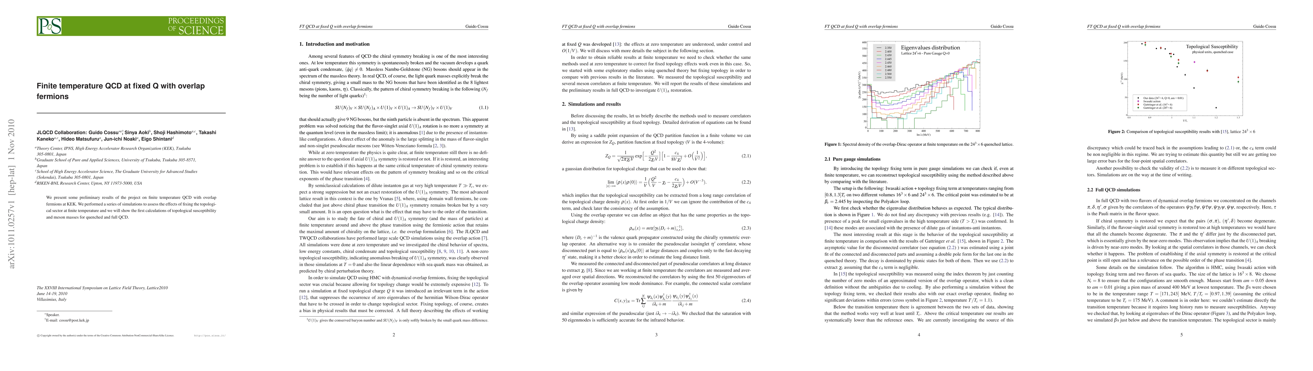 Summary: This study explores finite temperature Quantum Chromodynamics (QCD) using overlap fermions, presenting preliminary results from simulations at KEK. Initial findings include calculations of topological susceptibility and meson masses in both quenched and full QCD scenarios.
