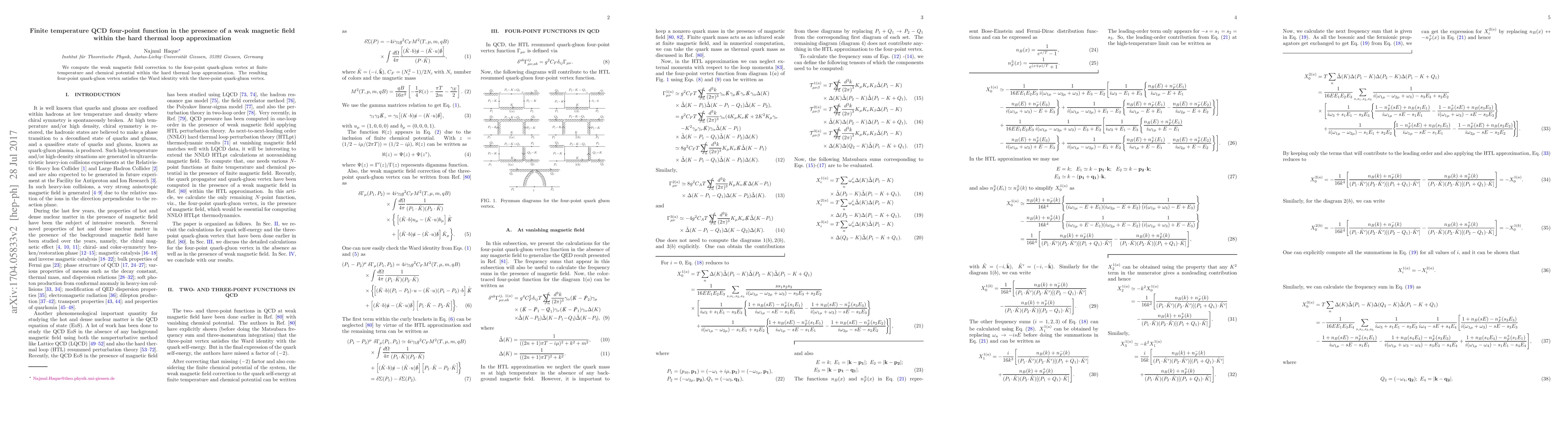 Researchers computed the effect of a weak magnetic field on a quark-gluon vertex at finite temperature using the hard thermal loop approximation, confirming that the resulting vertex satisfies the Ward identity.