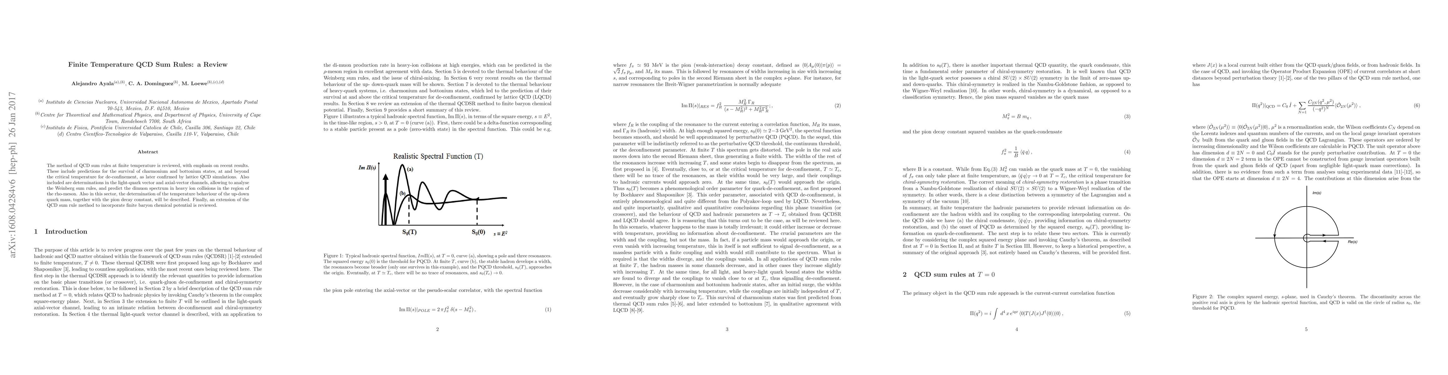 This paper reviews the QCD sum rules applied at finite temperatures, highlighting recent findings on charmonium and bottonium survival above the de-confinement critical temperature, confirmed by lattice QCD. It also discusses predictions for the dimuon spectrum in heavy ion collisions and the temperature dependence of up-down quark masses and the pion decay constant.