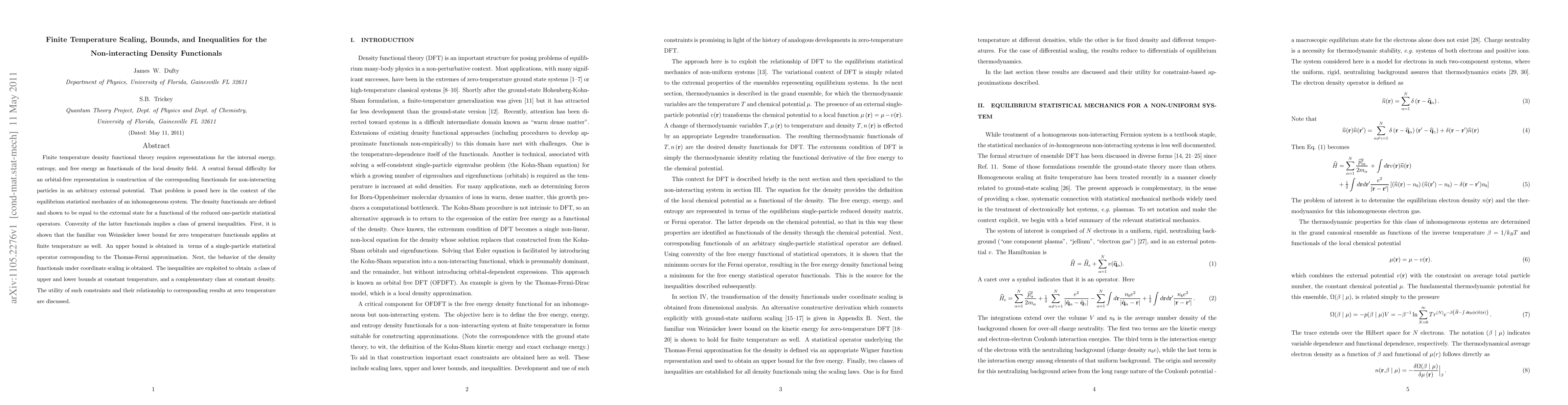 This paper explores finite temperature density functional theory, establishing functionals for internal energy, entropy, and free energy in non-interacting systems. It derives inequalities and bounds for these functionals, showing that the von Weizsäcker lower bound holds at finite temperature, and introduces an upper bound based on the Thomas-Fermi approximation.