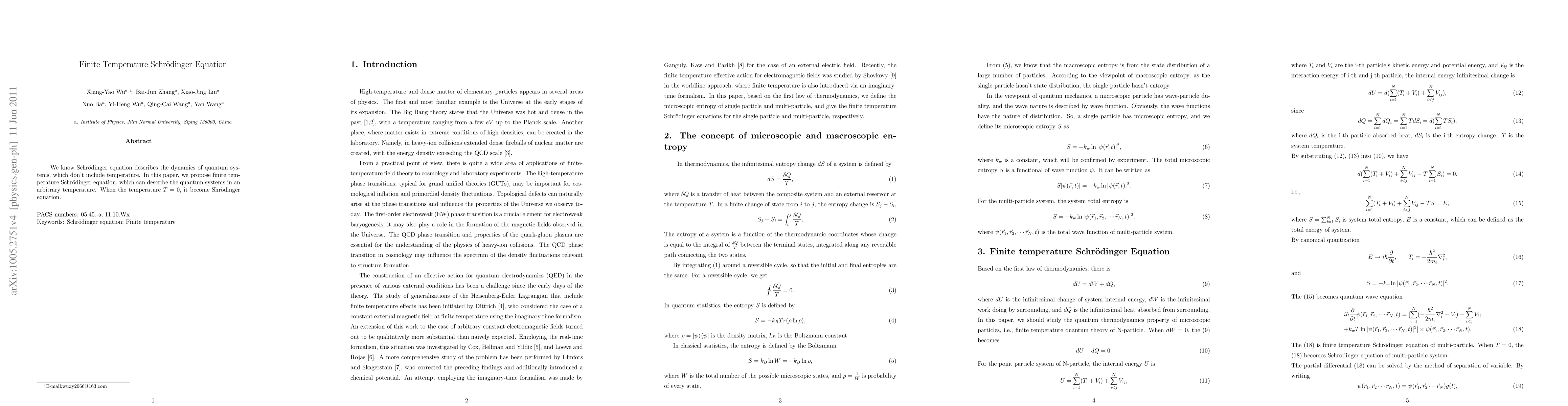 This paper introduces a finite temperature Schrödinger equation to describe quantum systems at non-zero temperatures, reducing to the standard Schrödinger equation at T=0. This extension aims to incorporate thermal effects into quantum dynamics.