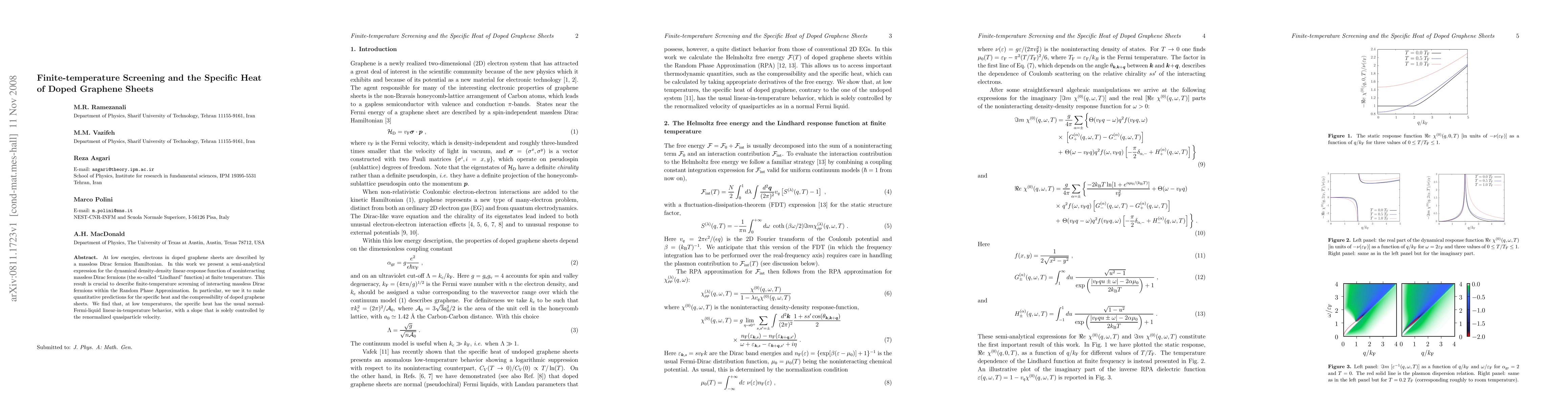 This study derives a semi-analytical expression for the finite-temperature screening of massless Dirac fermions in doped graphene sheets, predicting the specific heat and compressibility, which shows normal-Fermi-liquid behavior at low temperatures controlled by quasiparticle velocity.