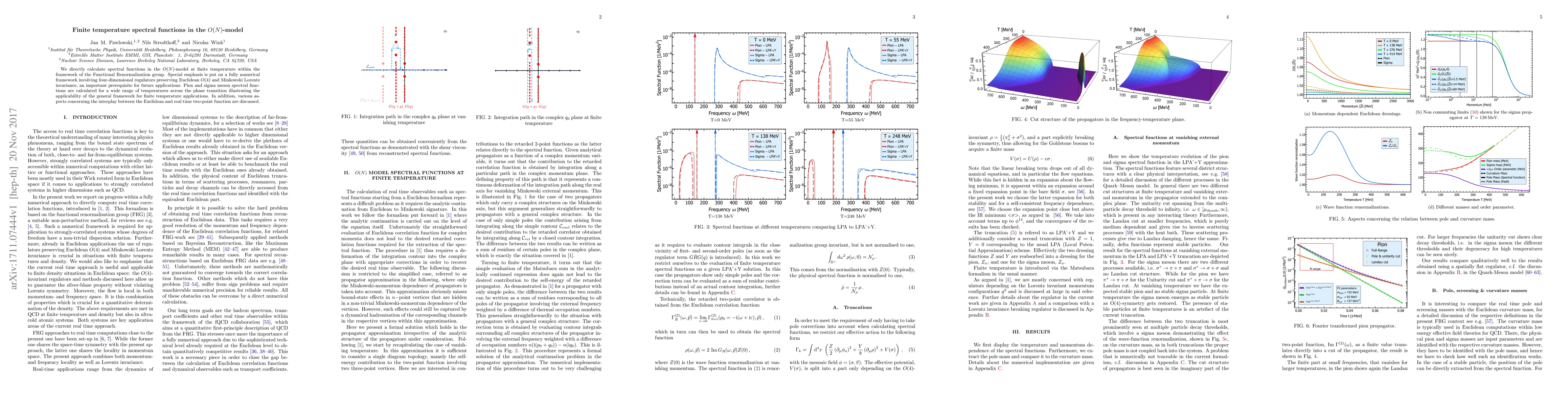 We directly calculate spectral functions in the O(N)-model at finite temperature within the framework of the Functional Renormalization group. Special emphasis is put on a fully numerical framework involving four-dimensional regulators preserving Euclidean O(4) and Minkowski Lorentz invariance, an important prerequisite for future applications. Pion and sigma meson spectral functions are calculated for a wide range of temperatures across the phase transition illustrating the applicability of the general framework for finite temperature applications. In addition, various aspects concerning the interplay between the Euclidean and real time two-point function are discussed.