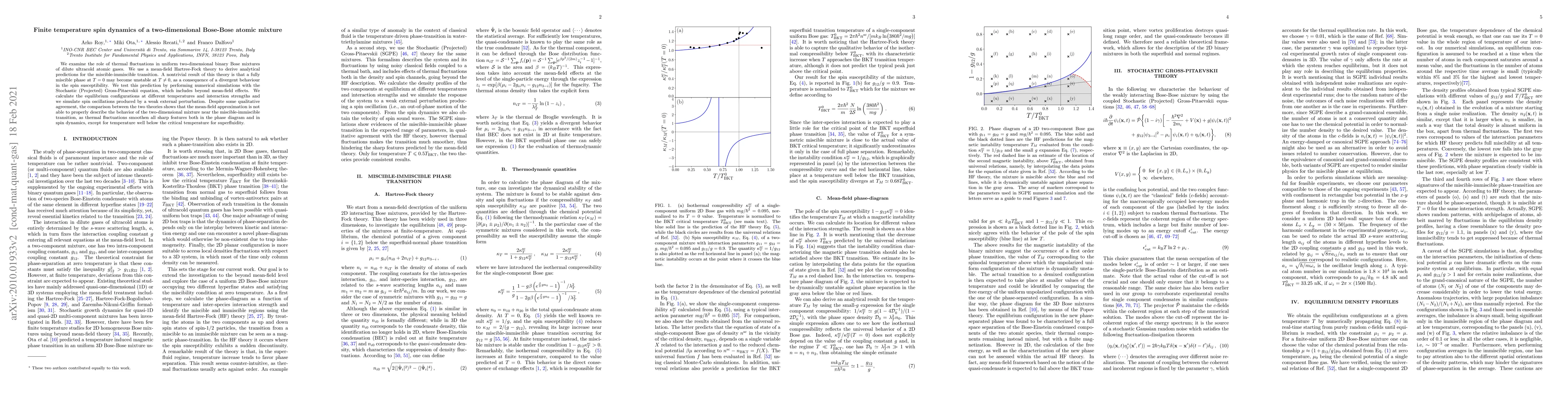 We examine the role of thermal fluctuations in uniform two-dimensional binary Bose mixtures of dilute ultracold atomic gases. We use a mean-field Hartree-Fock theory to derive analytical predictions for the miscible-immiscible transition. A nontrivial result of this theory is that a fully miscible phase at $T=0$ may become unstable at $T\neq0$, as a consequence of a divergent behaviour in the spin susceptibility. We test this prediction by performing numerical simulations with the Stochastic (Projected) Gross-Pitaevskii equation, which includes beyond mean-field effects. We calculate the equilibrium configurations at different temperatures and interaction strengths and we simulate spin oscillations produced by a weak external perturbation. Despite some qualitative agreement, the comparison between the two theories shows that the mean-field approximation is not able to properly describe the behavior of the two-dimensional mixture near the miscible-immiscible transition, as thermal fluctuations smoothen all sharp features both in the phase diagram and in spin dynamics, except for temperature well below the critical temperature for superfluidity.