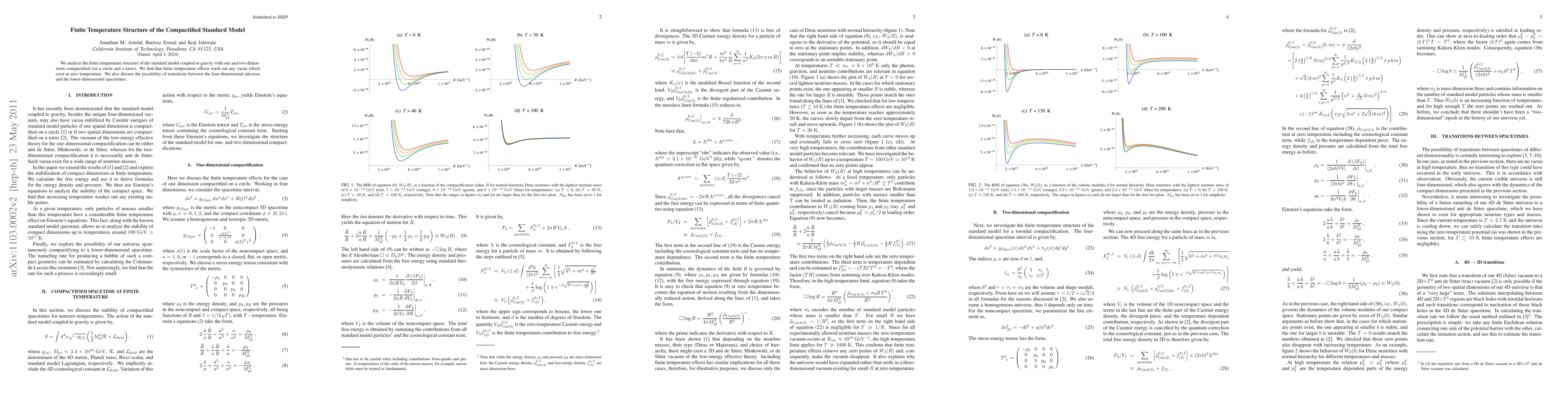 We analyze the finite temperature structure of the standard model coupled to gravity with one and two dimensions compactified (on a circle and a torus). We find that finite temperature effects wash out any vacua which exist at zero temperature. We also discuss the possibility of transitions between the four-dimensional universe and the lower-dimensional spacetimes.