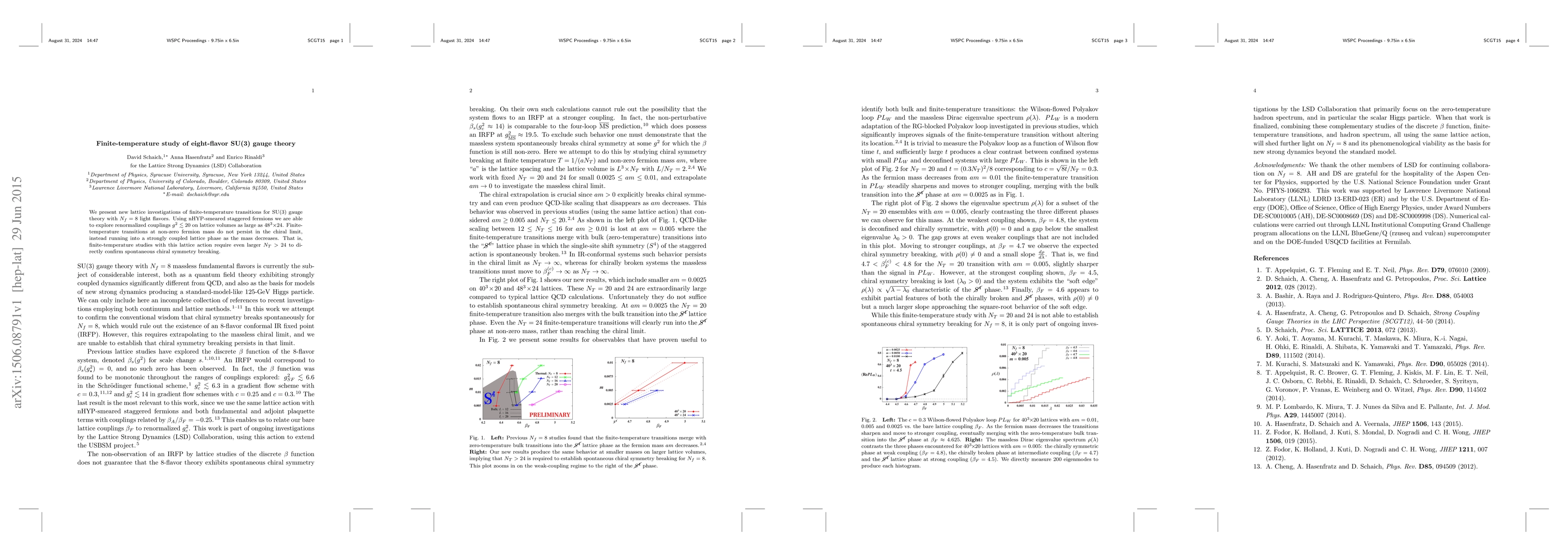 We present new lattice investigations of finite-temperature transitions for SU(3) gauge theory with Nf=8 light flavors. Using nHYP-smeared staggered fermions we are able to explore renormalized couplings $g^2 \lesssim 20$ on lattice volumes as large as $48^3 \times 24$. Finite-temperature transitions at non-zero fermion mass do not persist in the chiral limit, instead running into a strongly coupled lattice phase as the mass decreases. That is, finite-temperature studies with this lattice action require even larger $N_T > 24$ to directly confirm spontaneous chiral symmetry breaking.