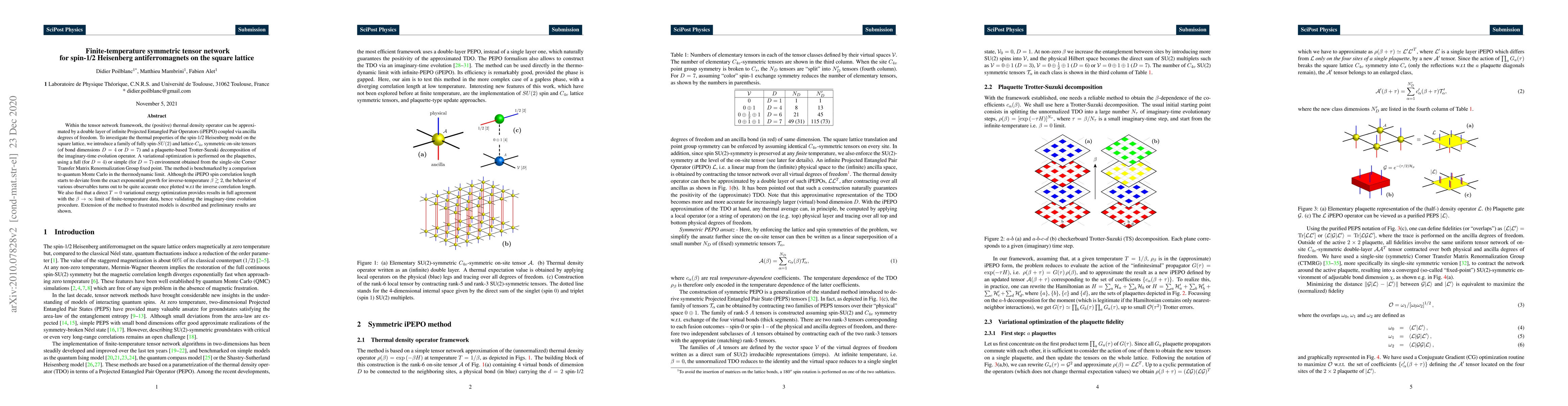 Within the tensor network framework, the (positive) thermal density operator can be approximated by a double layer of infinite Projected Entangled Pair Operator (iPEPO) coupled via ancilla degrees of freedom. To investigate the thermal properties of the spin-1/2 Heisenberg model on the square lattice, we introduce a family of fully spin-$SU(2)$ and lattice-$C_{4v}$ symmetric on-site tensors (of bond dimensions $D=4$ or $D=7$) and a plaquette-based Trotter-Suzuki decomposition of the imaginary-time evolution operator. A variational optimization is performed on the plaquettes, using a full (for $D=4$) or simple (for $D=7$) environment obtained from the single-site Corner Transfer Matrix Renormalization Group fixed point. The method is benchmarked by a comparison to quantum Monte Carlo in the thermodynamic limit. Although the iPEPO spin correlation length starts to deviate from the exact exponential growth for inverse-temperature $\beta \gtrsim 2$, the behavior of various observables turns out to be quite accurate once plotted w.r.t the inverse correlation length. We also find that a direct $T=0$ variational energy optimization provides results in full agreement with the $\beta\rightarrow\infty$ limit of finite-temperature data, hence validating the imaginary-time evolution procedure. Extension of the method to frustrated models is described and preliminary results are shown.